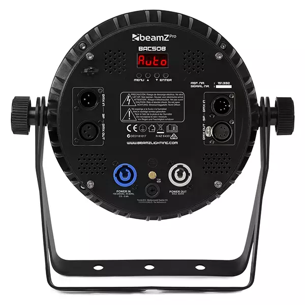 The BeamZ BAC509 is an aluminium LED ProPar, created by the latest LED technology. This robust ProPar with 12x 10W 4-in1 LEDs is suitable for a wide range of applications from uplighting a large venue to lighting a stage for live performances. Highly efficient, natural convection cooling thanks to the attractive cast aluminium housing with heat sink design. There are no internal cooling fans in these PAR cans, which mean absolutely zero noise. Equipped with Power Connection in/out and XLR 3-pin and 5-pin in/out for daisy chaining multiple units together.