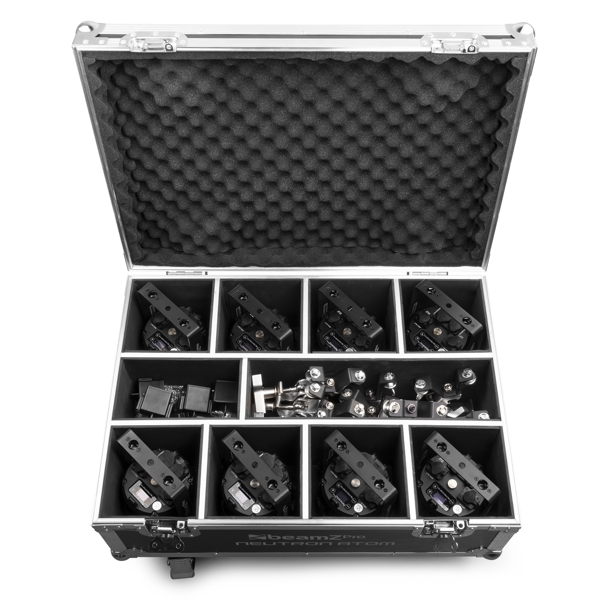 The ultimate flight case to transport and use 8x Neutron-Atom hybrid fixtures in a compact and safe way. Your wash lights are extremely well protected against impact, abrasion, collision etc.