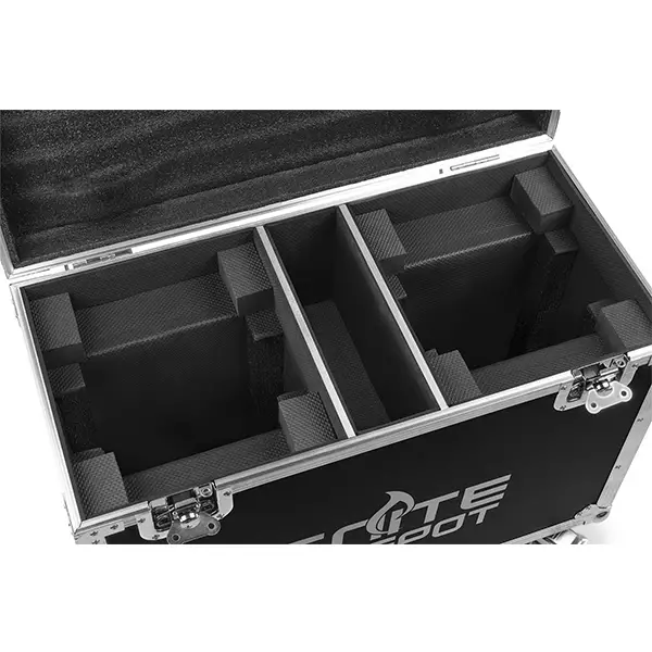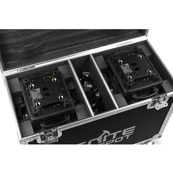 A set of 2x IGNITE120 Spot moving heads (150.425) in a flightcase.The flightcase is designed for the Ignite120 and protects your valuable lights during transport.