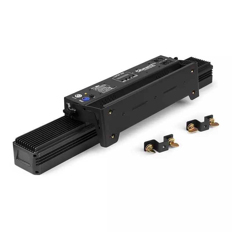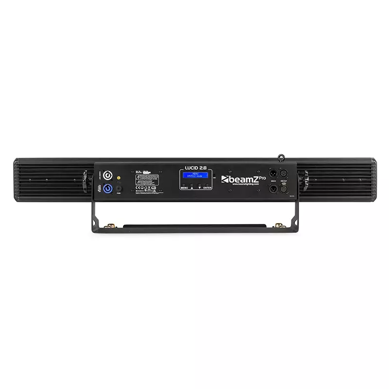 The LUCID is equipped with 4 or 8 high power COB LEDs that can be used for either wash effects or as a pixel controlled bar. With the latest COB technology it’s possible to create flawless RGBW colour mixing. The LUCID can either be used in stand-alone mode and run its preset programs in a certain speed or follows the music, thanks to the built-in microphone. But for full control you can also use a DMX controller to program this light effect into your shows. The LUCID can be placed on the floor by turning the bracket upside down, making it ideal for both fixed installations and rental.