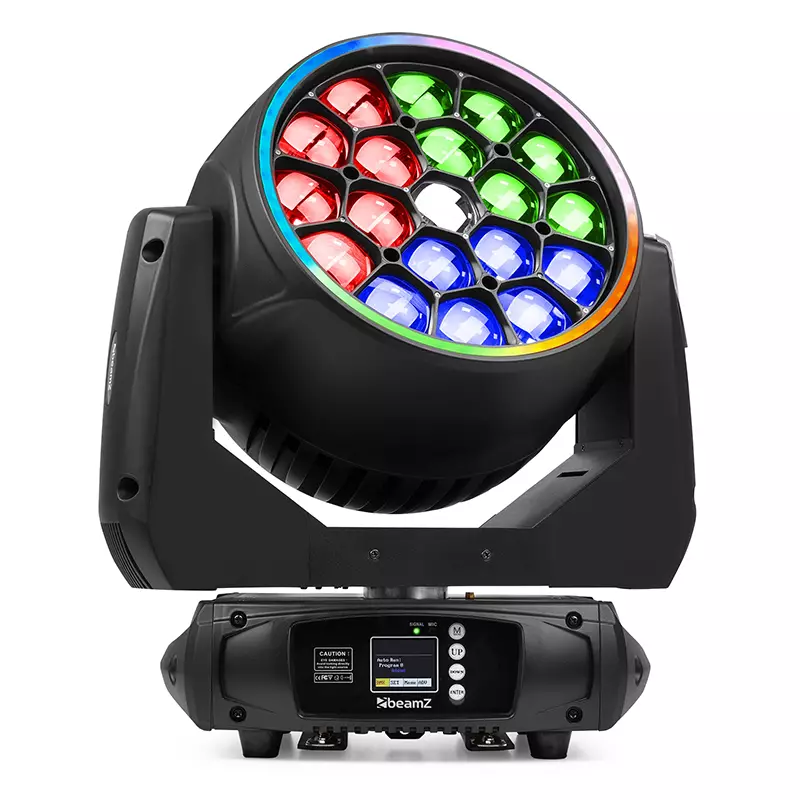 The MHL1940 is a wash moving head with a linear motorized zoom equipped with 19 ultra-bright 40 Watt 4-in-1 LEDs according to the latest technology. This moving head is equipped with unique honeycomb design lenses and each LED can be controlled individually to create amazing effects. (Kaleido effects) It’s also setup with extremely powerful noise-reducing motors, enabling ultra-fast pan and tilt movement while keeping the noise to a bare minimum. Perfectly useable for many events and club installs.