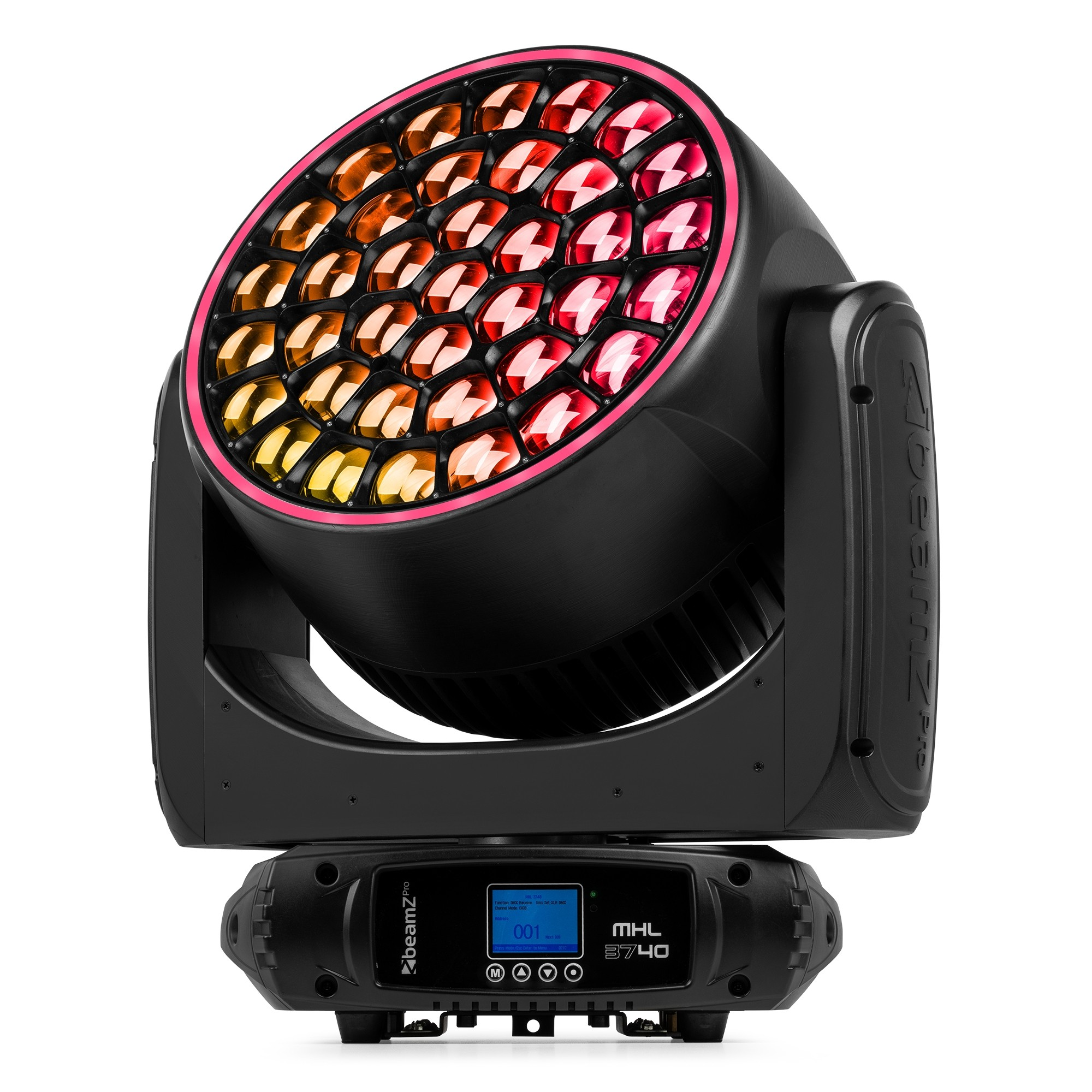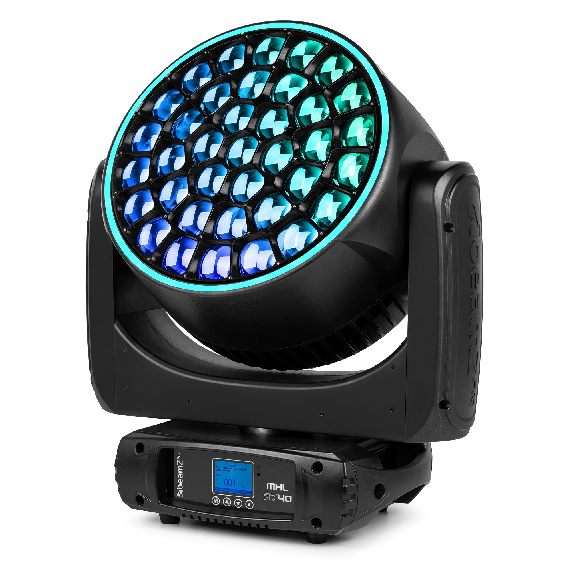 The MHL3740 is a wash moving head with a linear motorized zoom equipped with 37 ultra-bright 40 Watt 4-in-1 LEDs according to the latest technology. This moving head is set up with extremely powerful noise-reducing motors, enabling ultra-fast pan and tilt movement while keeping the noise to a bare minimum. Perfectly useable for many events and club installs.
