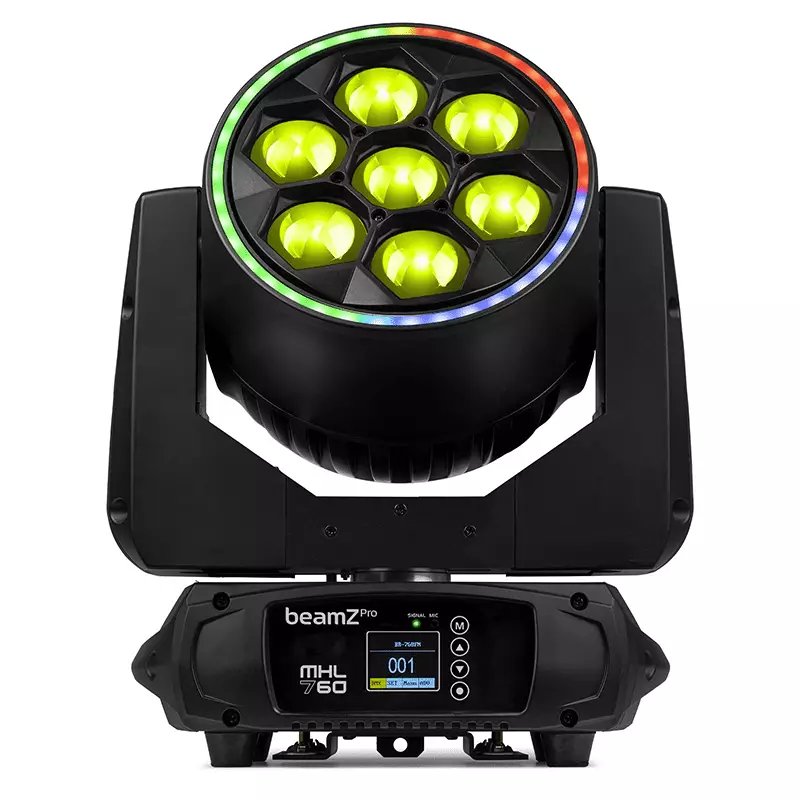 The MHL760 is a wash moving head with a linear motorized zoom equipped with 7 ultra-bright 60 Watt 4-in-1 LEDs according to the latest technology. This moving head is equipped with unique honeycomb design lenses and each LED can be controlled individually to create amazing effects. (Kaleido effects) It’s also setup with extremely powerful noise-reducing motors, enabling ultra-fast pan and tilt movement while keeping the noise to a bare minimum. Perfectly useable for many events and club installs.
