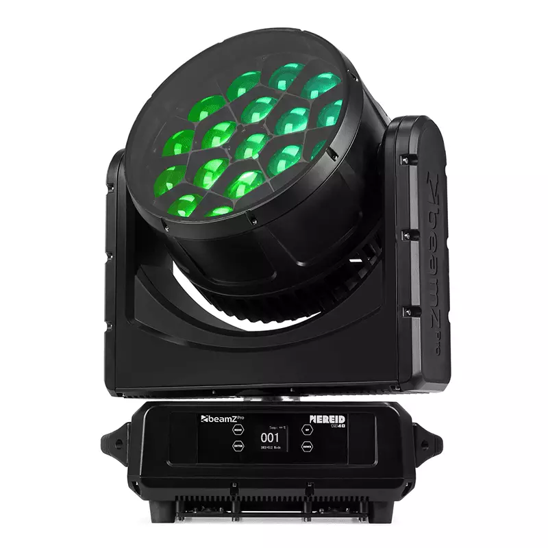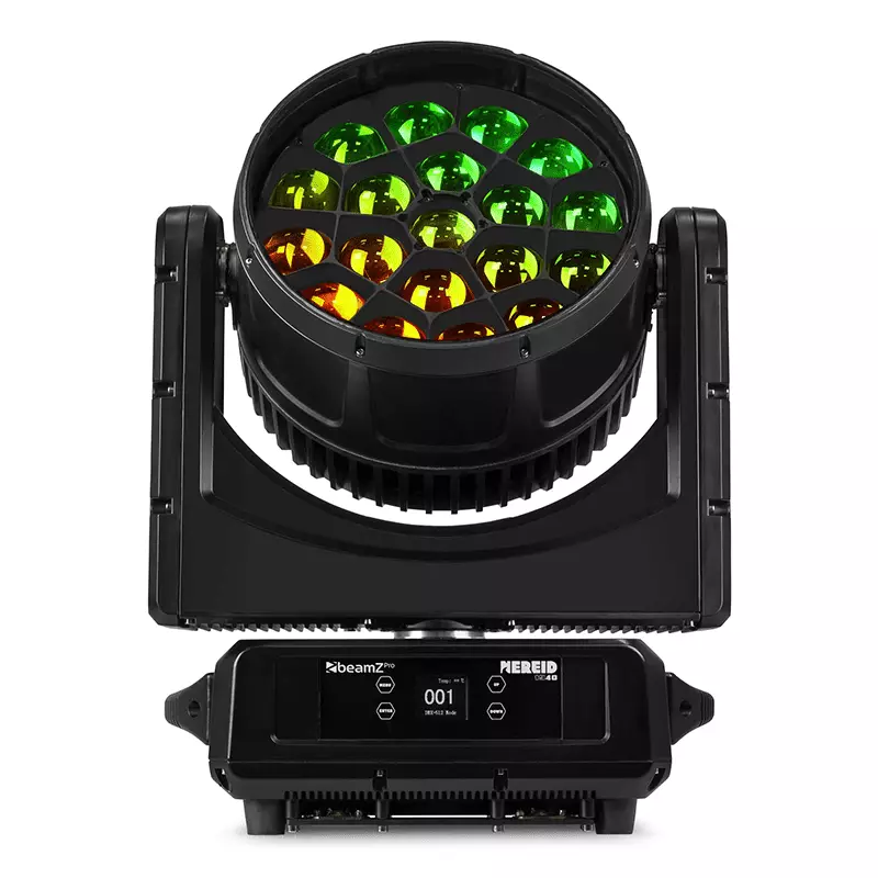 The Nereid1940 is a powerful wash/beam moving head with a linear motorized zoom equipped with 19 ultra-bright 40 Watt 4-in-1 LEDs according to the latest technology. This moving head for indoor and outdoor use is equipped with unique honeycomb design lenses and each LED can be controlled individually to create amazing effects. (Kaleido effects) It’s also setup with extremely powerful noise-reducing motors, enabling ultra-fast pan and tilt movement while keeping the noise to a bare minimum. Perfectly useable for indoor and outdoor productions, events and installations that require a greater light output.