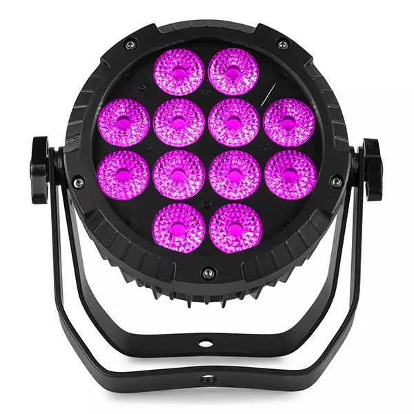 This aluminium IP65 PAR with built-in battery is specifically designed for outside usage. With 12 high power 6-in-1 LEDs giving 6 colours it is ideal to use on any inside or outside venue. This WBP1212IP Par is specially designed to enrich the wash possibilities and to ensure a better convergence of light. Water resistant to IP65 specification with watertight internal gaskets and weatherproof power and data cable in/out connections. No fan – heat is dissipated via the aluminium housing. Includes OLED display, wireless DMX and double yoke ensures the product can be mounted anywhere the user desires. Also comes with an Infrared remote control.