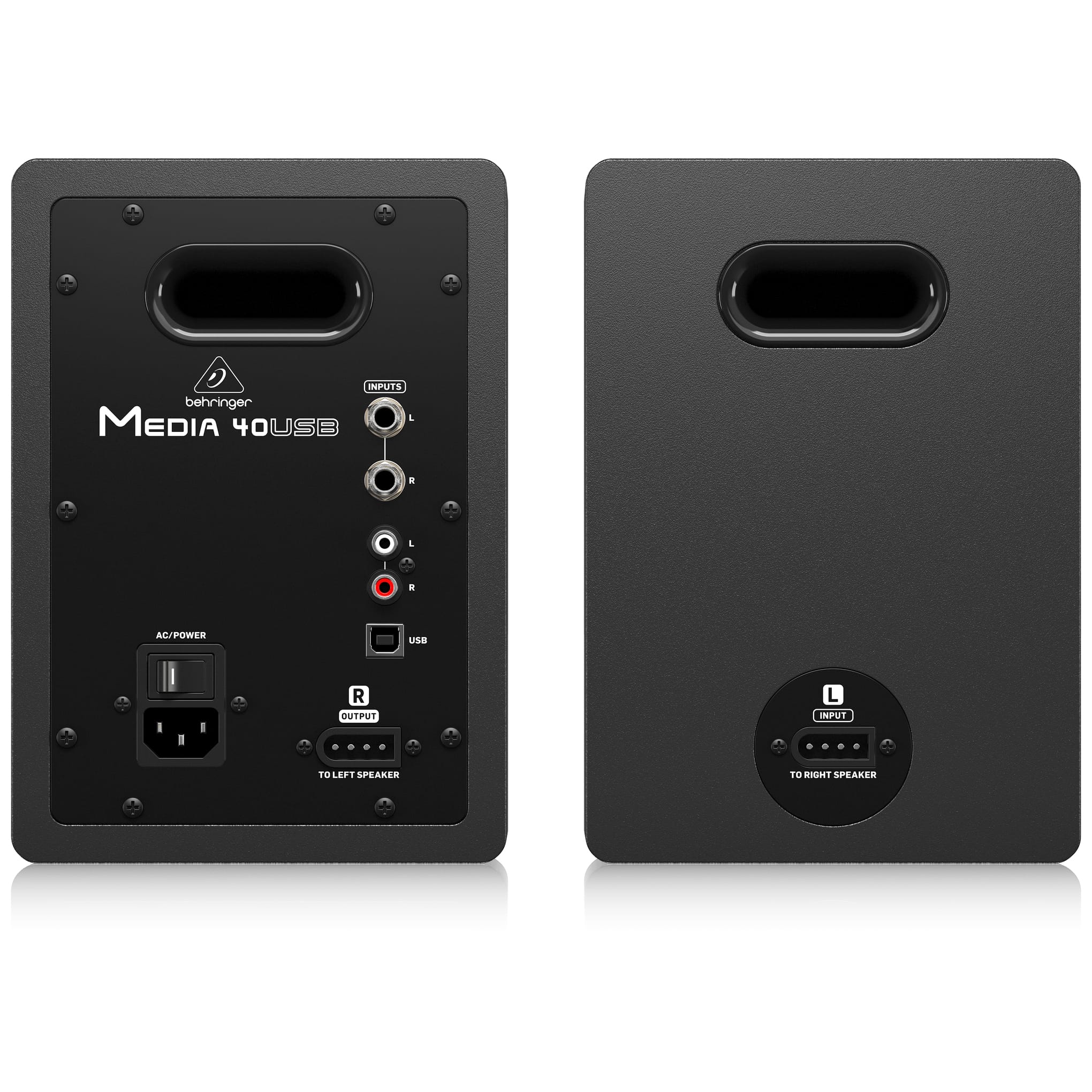 MEDIA 40USB 150-Watt digital monitor speakers combine exceptional connectivity via USB and analog input in a bi-amped, two-way speaker configuration, providing the perfect sonic upgrade for any audio or video application. You’re sure to want a pair for every computer workstation in the house – and they make exceptional add-on speakers for flat-screen TVs and self-contained AV media players – as well as the perfect monitor solution for college dorm rooms or anywhere enjoying music is a must.