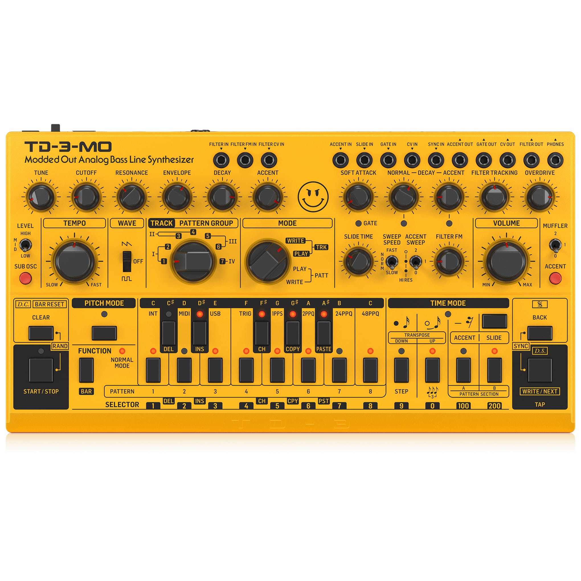 We just can’t help ourselves – like you, we’re gear-heads, too. For those who want the numbers, TD-3-MO-AM has 15 controls and 33 switches to give you direct and real-time access to all important parameters, all laid out in a highly-intuitive format that puts the joy back into your music creation. And you can expand TD-3-MO-AM’s tone-sculpting capabilities beyond your wildest dreams by utilizing the multi-I/O patchbay to connect external devices!