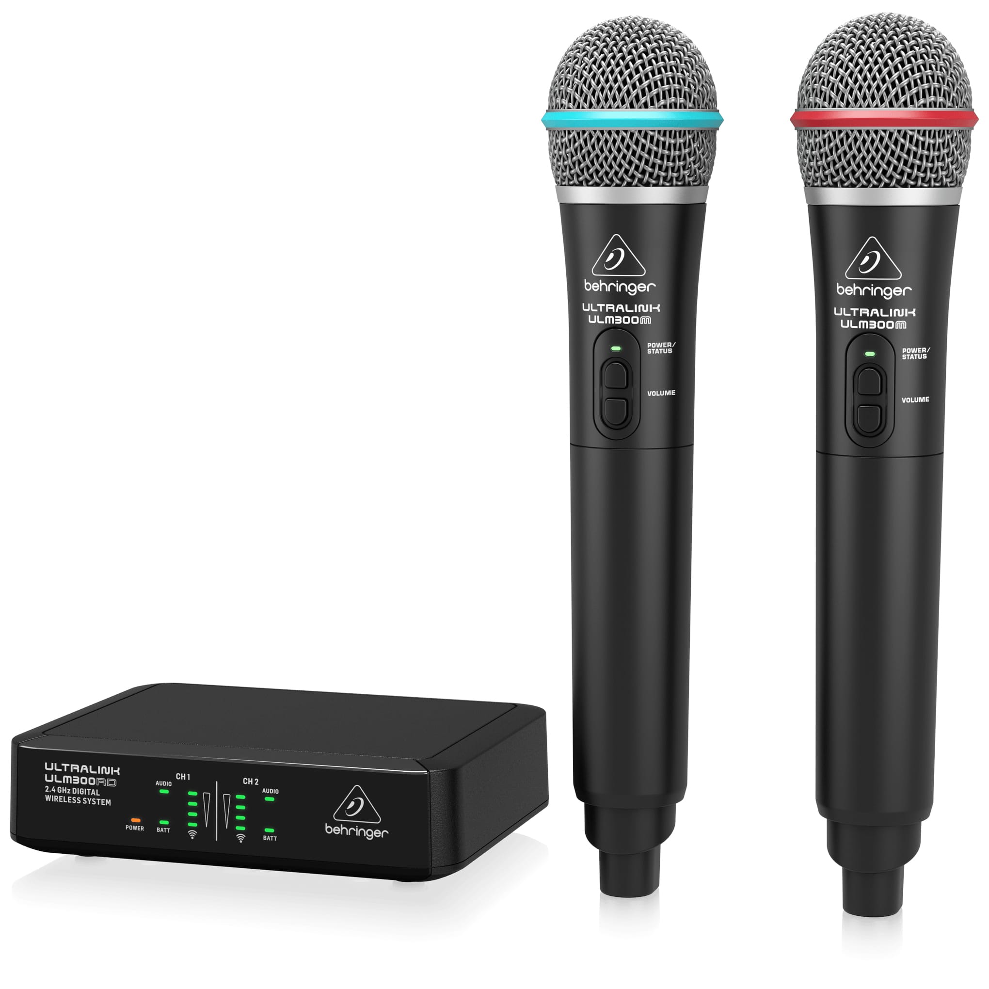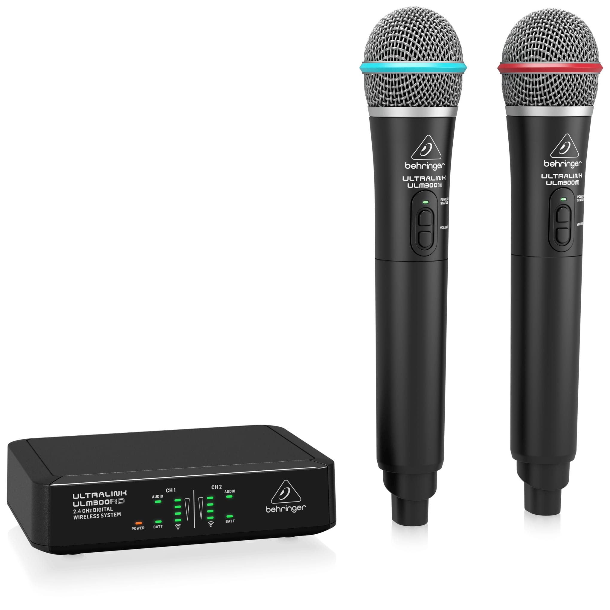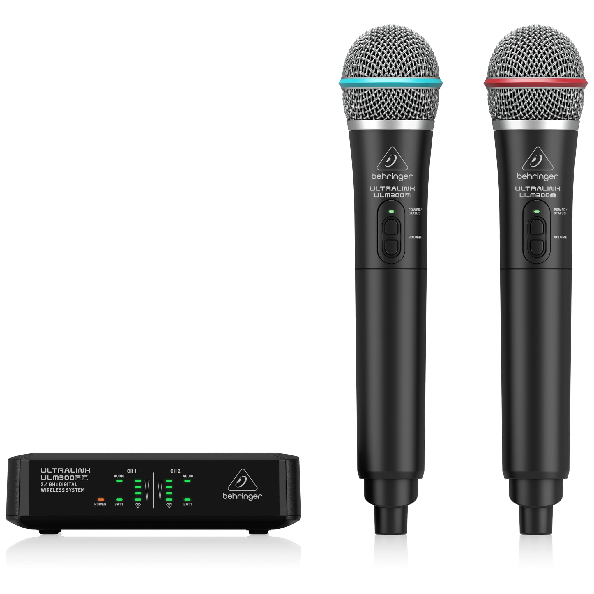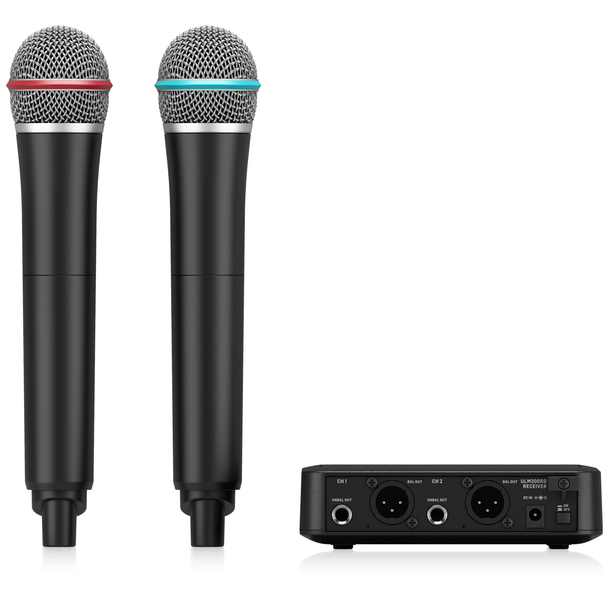 • Package of 2 ULM300M wireless handheld microphones and ULM300RD dual-channel receiver