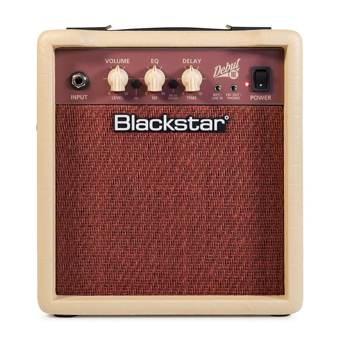 The Debut 10E also incorporates Blackstar’s patented ISF (Infinite Shape Feature) EQ control. This unique function lets you dial in incredible sounds effortlessly. When set fully counter-clockwise, the amp exhibits an American characteristic. This results in a tight bottom end and aggressive middle. Fully clockwise, it adopts a British characteristic, producing a ‘woody’ and less aggressive tone.