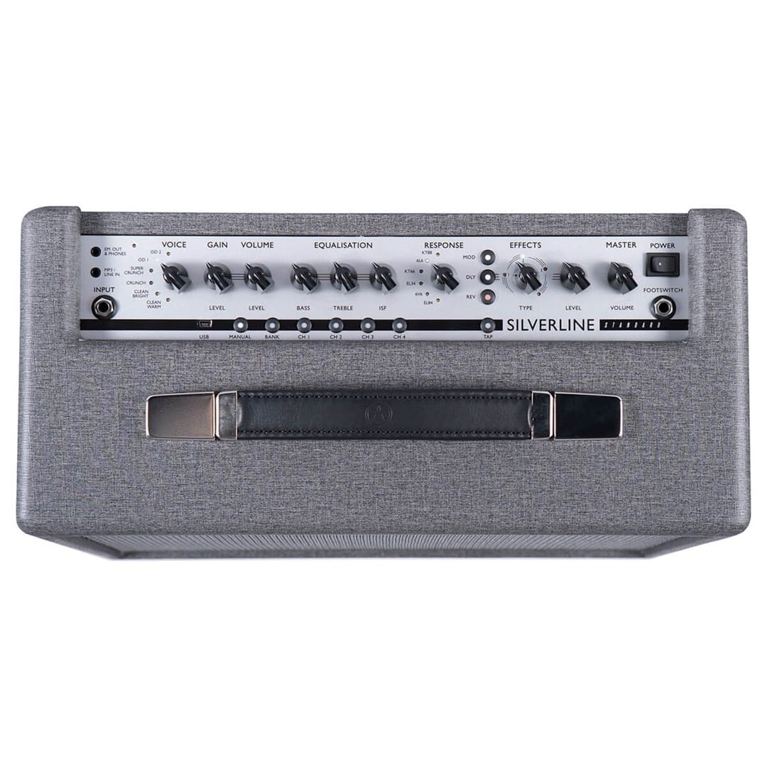 The Infinite Shape Feature (ISF) technology provides seamless tonal transitions between American and British sounds, offering further tonal flexibility. For recording and practice, the SLVR-20 includes a USB port for direct recording and re-amping, along with MP3/Line In and Em. Out/Phone jacks for versatile connectivity. The ARCHITECT software enhances your editing capabilities and patch management. With twelve customizable preset locations and the option to expand to 128 presets with a footswitch, the Silverline Standard adapts to any performance or practice scenario.