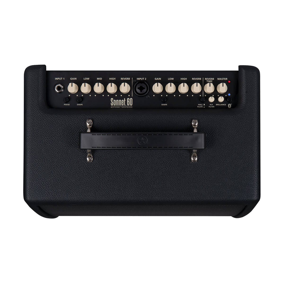 The Sonnet 60 Black amplifier excels with its robust 60-watt output and versatile features, making it an excellent choice for various acoustic needs. The amplifier's studio-quality Hall and Plate reverbs enrich sound for both live performances and recordings. It accommodates diverse setups with four simultaneous inputs, including Bluetooth and USB recording options. Musicians benefit from independent EQ and reverb controls, ensuring precise sound adjustments. Additional features, like a high-pass filter and a footswitch socket, enhance usability and customization. Compact yet powerful, the Sonnet 60 Black provides exceptional sound quality and flexibility, ideal for both practice and performance.