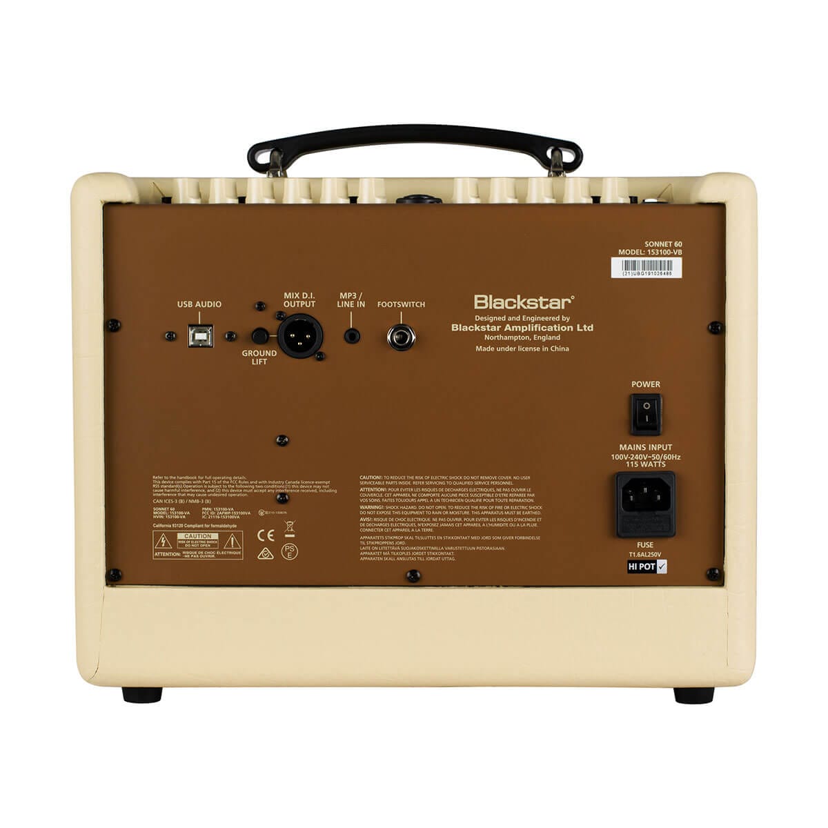The Sonnet 60 Blonde is designed for convenience and functionality. It features USB audio out and an XLR D.I. mix output for easy integration into various setups. The MP3/line-in allows for external audio sources, while the footswitch socket enables audio mute and reverb on/off functions. The tilt-back stand ensures optimal sound projection, making it a perfect choice for live performances and practice sessions.