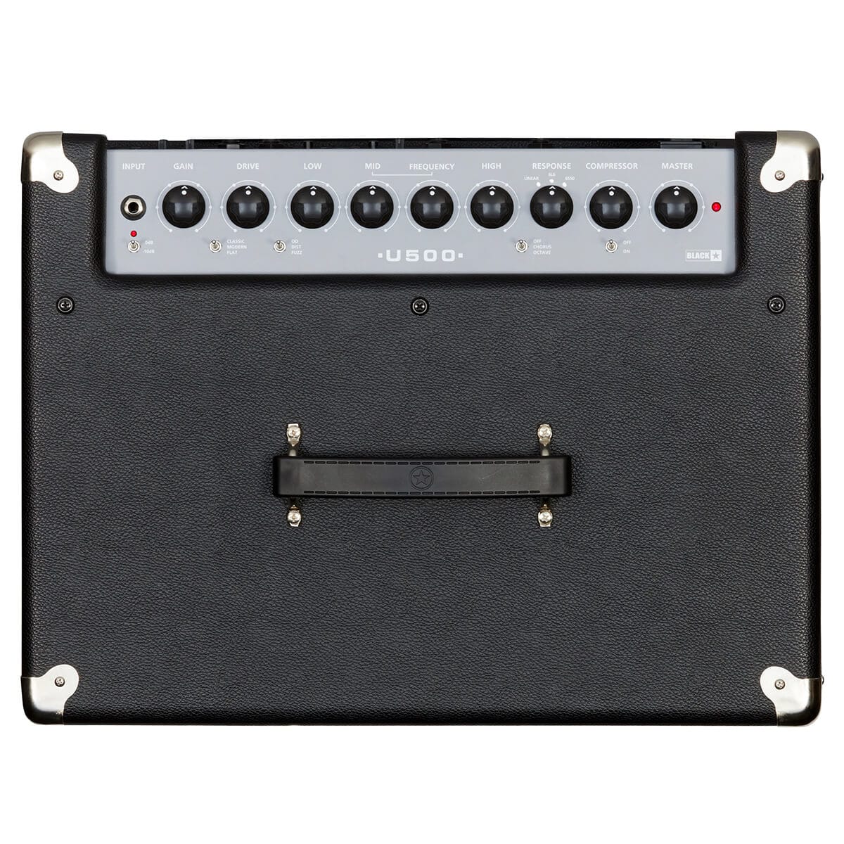 The Unity 500 features three footswitchable drives—Overdrive, Distortion, and Fuzz—with user-controllable blend. This setup allows you to switch between different levels of overdrive effortlessly. With three distinct voices—Classic, Modern, and Flat—you can easily tailor the amplifier's sound to fit your style. The 3-band EQ with semi-parametric Mid control and unique Response control (Linear, 6L6, and 6550) enable precise tone adjustments.