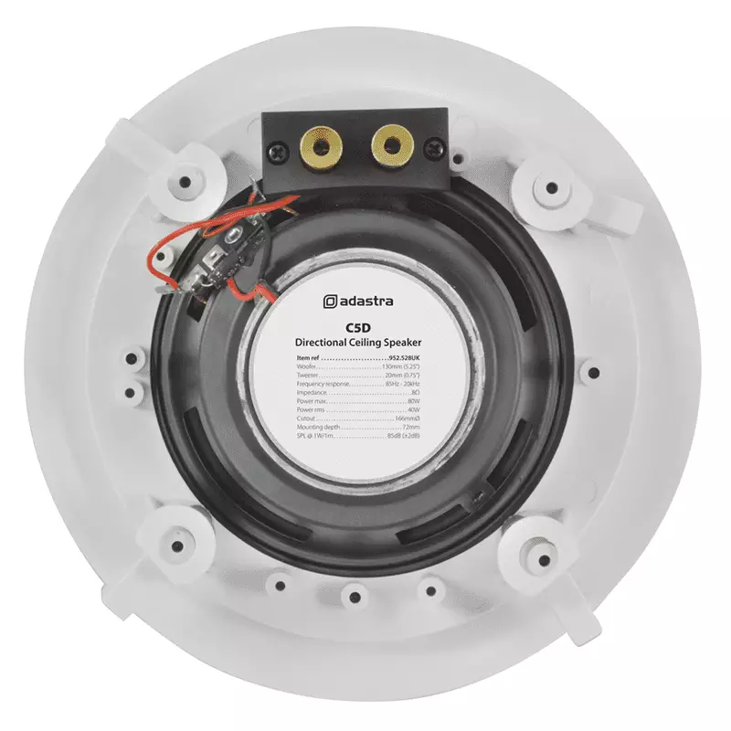 These easy fit ceiling speakers are ideal for main speakers, surround sound or remote speaker applications. The two-way design includes a Ferrofluid cooled silk dome tweeter and Polypropylene woofer with rubber surround to deliver the highest level sonic performance. The adjustable tweeter allows for the high frequencies to be focused in the direction of the listening area, this increases the flexibility when locating the speakers off-axis from the listeners.