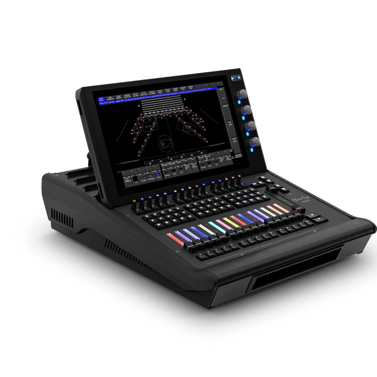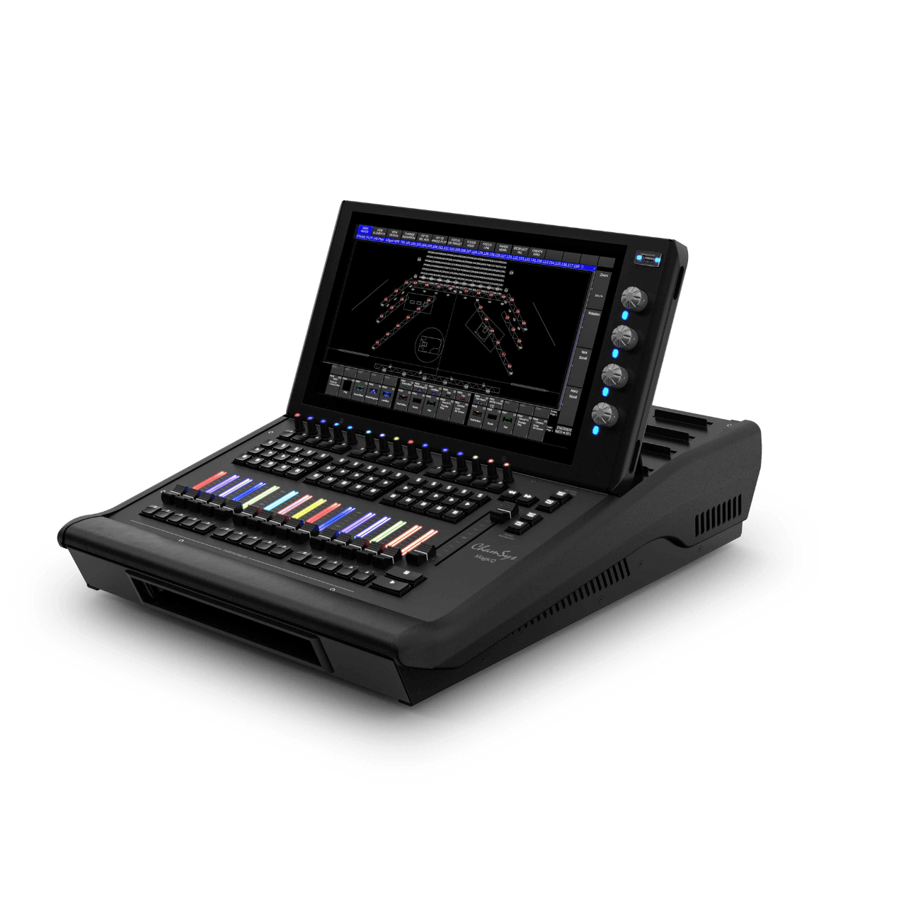 The MQ500M Stadium Wing lights the way with backlit keys, illuminated fader tracks and encoders, and glowing pockets. Together with the new updated graphics this takes MagicQ to a whole new level of customisation giving Lighting Designers freedom to visibly configure the console for their needs.