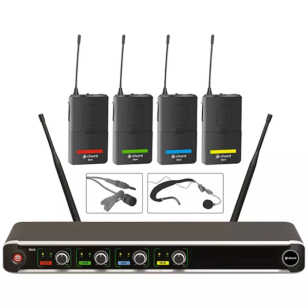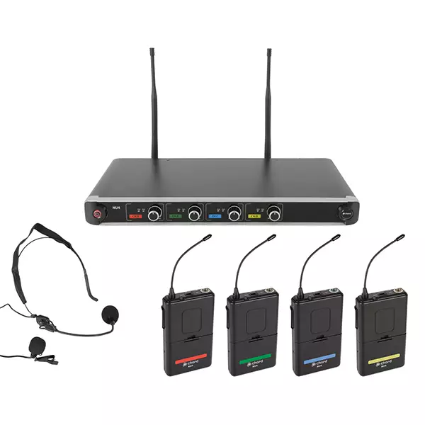UHF wireless system with 4 independent channels. The receiver is 19″ rack-mountable and features 4 separate XLR outputs or a mixed jack output. Available in sets with 4 handheld or 4 beltpack transmitters (with a choice of neckband or lavalier microphone for each beltpack) or a combo set with 2 of each. Suitable for vocal groups, theatres and presentations.