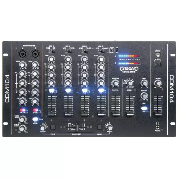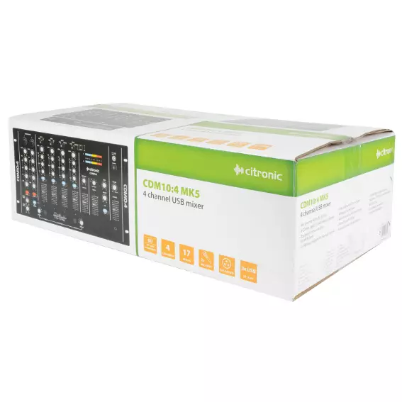 A classic mixer the Citronic CDM10:4 has always been the choice of the working DJ, with a simple layout that is packed with all the features you need. The MKV version comes with connectivity through USB and an additional auxiliary input on the top panel for external sound sources such as MP3 player.