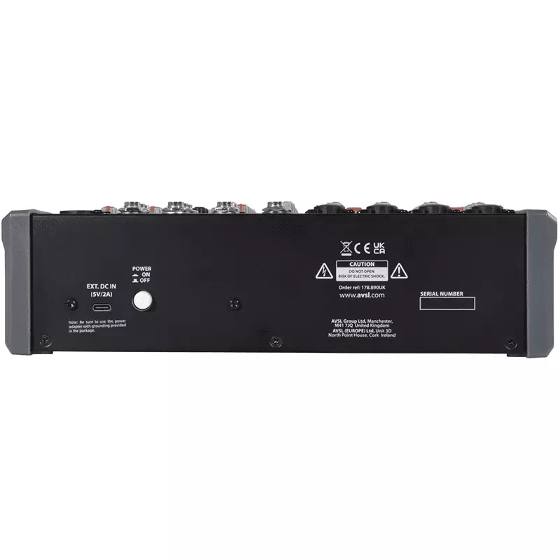 • Outputs: Main L+R XLR, L+R Monitor 6.3mm, Headphones 6.3mm