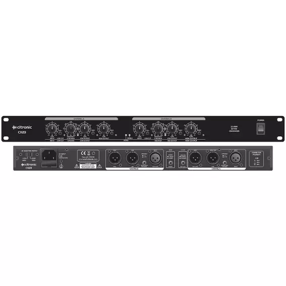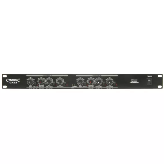 The CX23 is a 2-way stereo or 3-way mono active crossover designed to split frequencies so that low frequencies are delivered to the amp driving the sub cabinets and mid/top frequencies are delivered to the amp driving the mid/top frequency cabs. This type of system is more efficient and delivers more accurate sound quality, especially in larger PA systems.