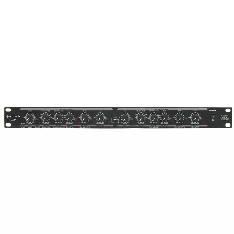 The CX34 is a 2 or 3-way stereo or 4-way mono active crossover designed to split frequencies so that low frequencies are delivered to the amp driving the sub cabinets and mid/top frequencies are delivered to the amp driving the mid/top frequency cabs. This type of system is more efficient and delivers more accurate sound quality, especially in larger PA systems.