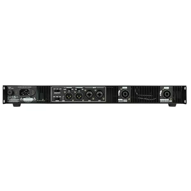 Lightweight power amplifiers in a 19″ rack-mountable housing for generating high sound pressure levels in medium to large sound reinforcement systems. H-series amplifiers employ a new hybrid class-H architecture, which combines the streamlined efficiency of a digitally controlled power section design with the power delivery and stability of a professional class-H output stage. Comprehensive internal protection monitors any thermal or overload conditions, automatically mutes at power on/off and provides active inrush limiting. A digital display continually shows the supply voltage, internal temperature and output level. A fully balanced signal path has 3 switchable input sensitivity levels to match different audio sources and the amplifier section can be set to operate in Stereo, Parallel or Bridge modes. A switchable 120Hz low-pass filter can be selected for use with subwoofers, avoiding the need for a separate crossover and saving additional expense and rack space. Speaker outputs can be connected using 1 or 2 Speakon leads as required. H-series amplifiers provide immediate and dynamic power on demand for sound contractors and PA installers that need dependable service with optimum sound quality.