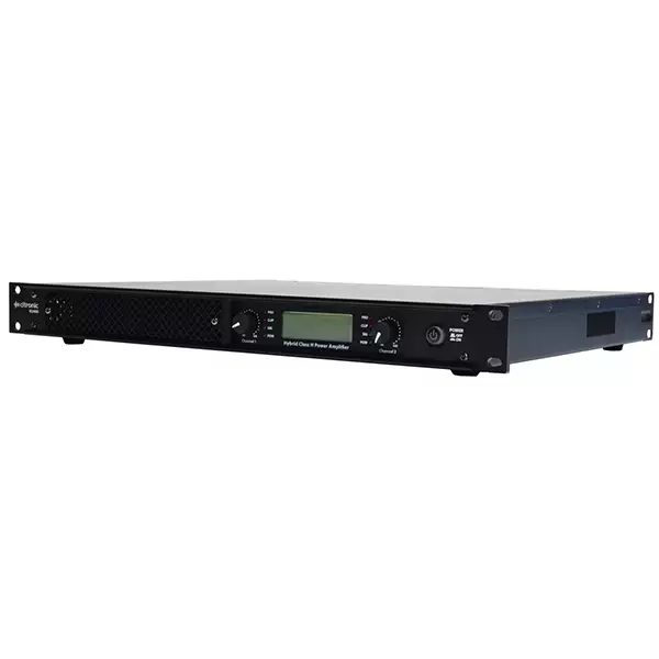 Lightweight power amplifiers in a 19″ rack-mountable housing for generating high sound pressure levels in medium to large sound reinforcement systems. H-series amplifiers employ a new hybrid class-H architecture, which combines the streamlined efficiency of a digitally controlled power section design with the power delivery and stability of a professional class-H output stage. Comprehensive internal protection monitors any thermal or overload conditions, automatically mutes at power on/off and provides active inrush limiting. A digital display continually shows the supply voltage, internal temperature and output level. A fully balanced signal path has 3 switchable input sensitivity levels to match different audio sources and the amplifier section can be set to operate in Stereo, Parallel or Bridge modes. A switchable 120Hz low-pass filter can be selected for use with subwoofers, avoiding the need for a separate crossover and saving additional expense and rack space. Speaker outputs can be connected using 1 or 2 Speakon leads as required. H-series amplifiers provide immediate a