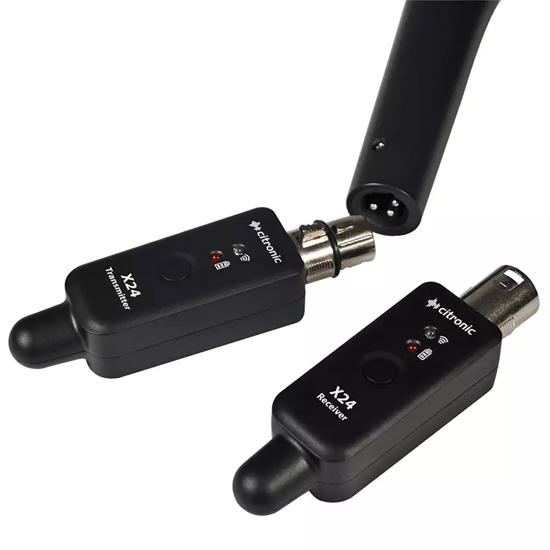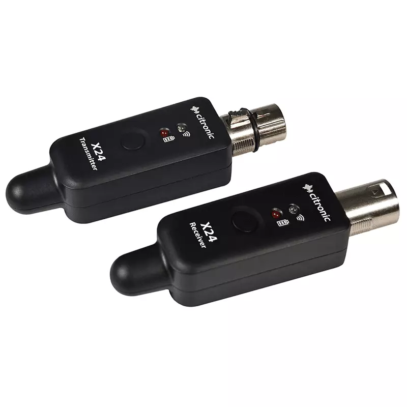 Convert a wired dynamic microphone into a frequency-hopping digital wireless system by connecting the X24 transmitter to the handheld microphone and the X24 receiver into a channel input on your mixing console. Equally, the X24 system can be used from the output of a mixer to the input of an active speaker where cabling is awkward or inconvenient. Setup is quick, automatic and operates on the license-free 2.4GHz band to provide a noise-free and wire-free link with minimal fuss. Both transmitter and receiver are rechargeable via USB-C with a charge splitter lead included for connecting to a standard USB charger. Jack adaptors are provided to convert the XLR connection into a 6.3mm plug for use as a line level or instrument wireless set. A neat and convenient tool for performers, presenters and mobile entertainers needing a hassle-free wireless connection.