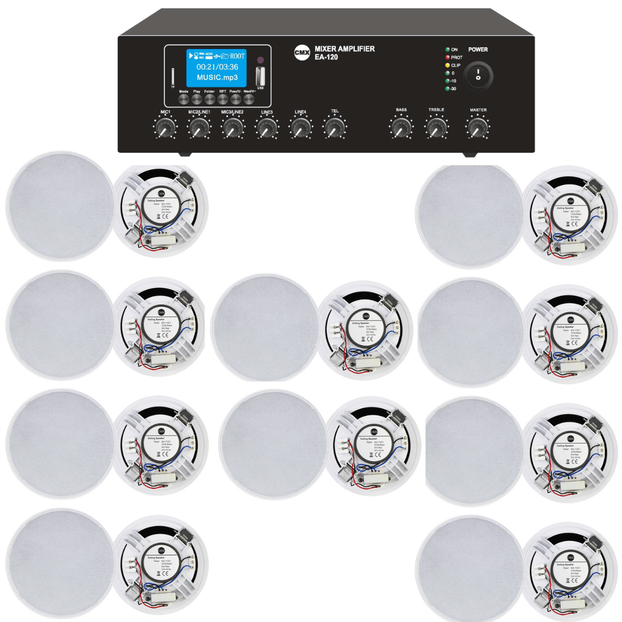 The CMX 60W Commercial Sound Bundle includes: