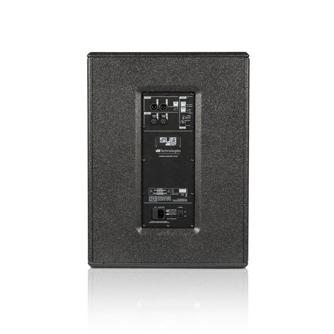 The dB Technologies SUB 615 15" 600W Active Subwoofer delivers a powerful blend of sound and precision in a compact design. Its advanced bass-reflex construction produces deep, resonant lows while maintaining clarity. Equipped with a robust 600W RMS Class D SMPS power amplifier, this subwoofer drives a 15” transducer. It achieves outstanding sound pressure levels of up to 131 dB. This capability makes it perfect for live performances, DJ setups, and fixed installations. Users can create a complete PA system using just one subwoofer and two full-range speakers. The integrated crossover simplifies setup by eliminating the need for external processing.