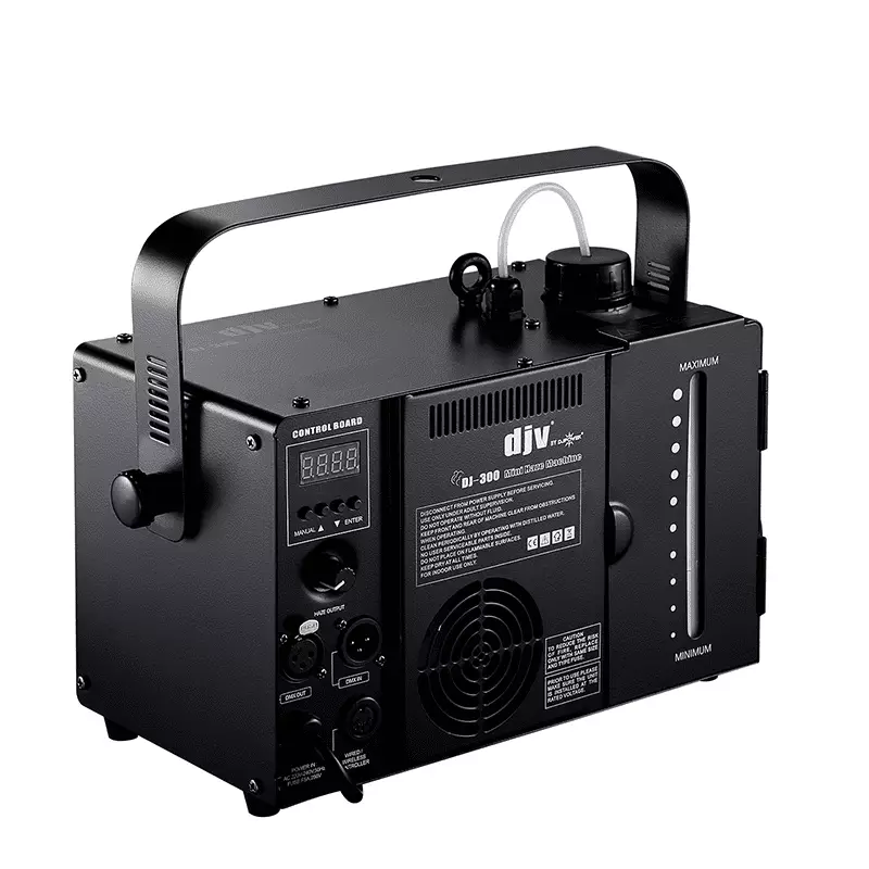 The DJ-300 is an ultra-compact haze machine specially designed for KTV rooms and party environments. Despite its small footprint, it features DMX compatibility and boasts low fluid consumption for efficient operation. The custom 1.5-liter fluid tank is specifically tailored to the unit and can be quickly replaced with a new bottle when needed.