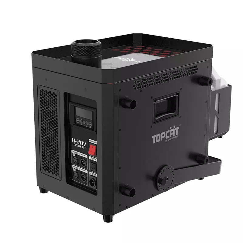 H-20V is a new dual-nozzle super jet fog machine launched by DJPOWER. It can achieve rapid air column effects without the need of CO2 cylinders. High-speed airflow assist technology enhances fog spray speed. The dual-nozzle design can spray up to 15-meter high air column with majestic effects! It has 37pcs of 8W LEDs, producing strong and colorful air columns. The machine has independent R&D high-speed airflow assist patent (No: ZL202023001465.9), Super-jet patent (No: ZL201520934500.2), Immediate-stop patent (No: ZL201320700998.7). It’s suitable for large-scale performances, bars, cultural tourism projects etc.