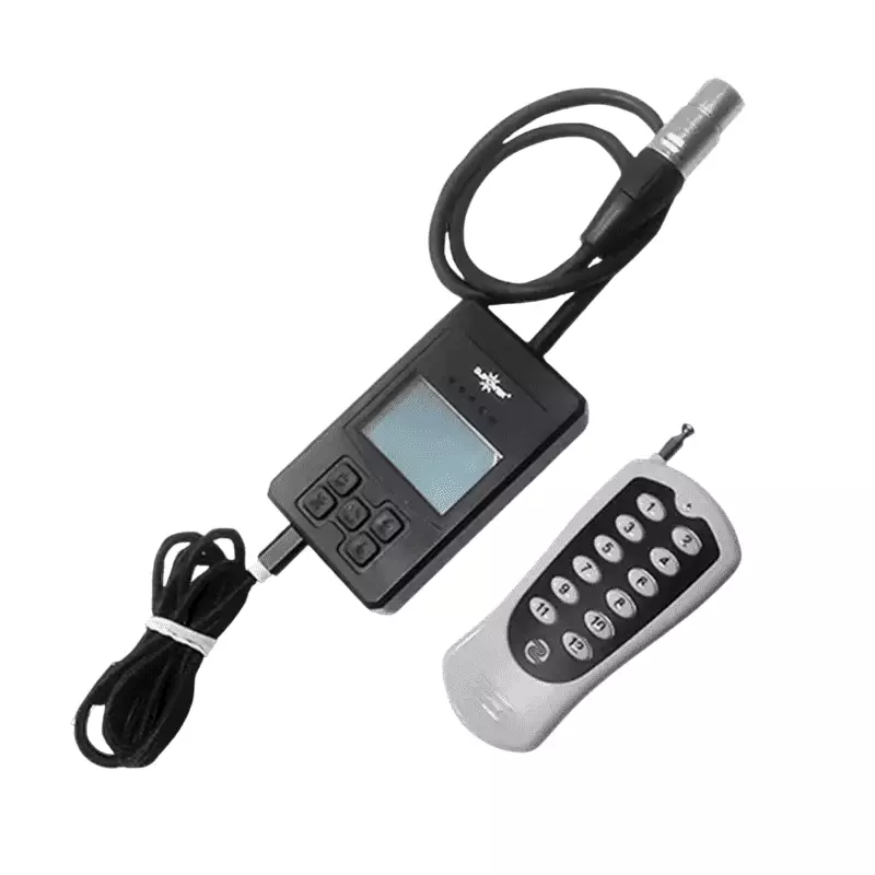 The Remote DMX Controller W-8 from DJPOWER is the ideal solution for anyone who wants to operate their DMX-capable DJPOWER devices wirelessly without an integrated remote control function. With a combination of state-of-the-art wireless technology and easy handling, the controller opens up new possibilities for controlling fog or other DMX-compatible effects. The W-8 remote DMX controller makes it possible to wirelessly control DMX devices that do not have their own remote control function. This is realised by connecting the controller to the machine’s DMX socket. Thanks to the RF-433MHz radio technology, users can control the effects precisely and flexibly from a distance. The controller supports up to 15 DMX scenes and 18 DMX channels, making it versatile and customisable for different applications.