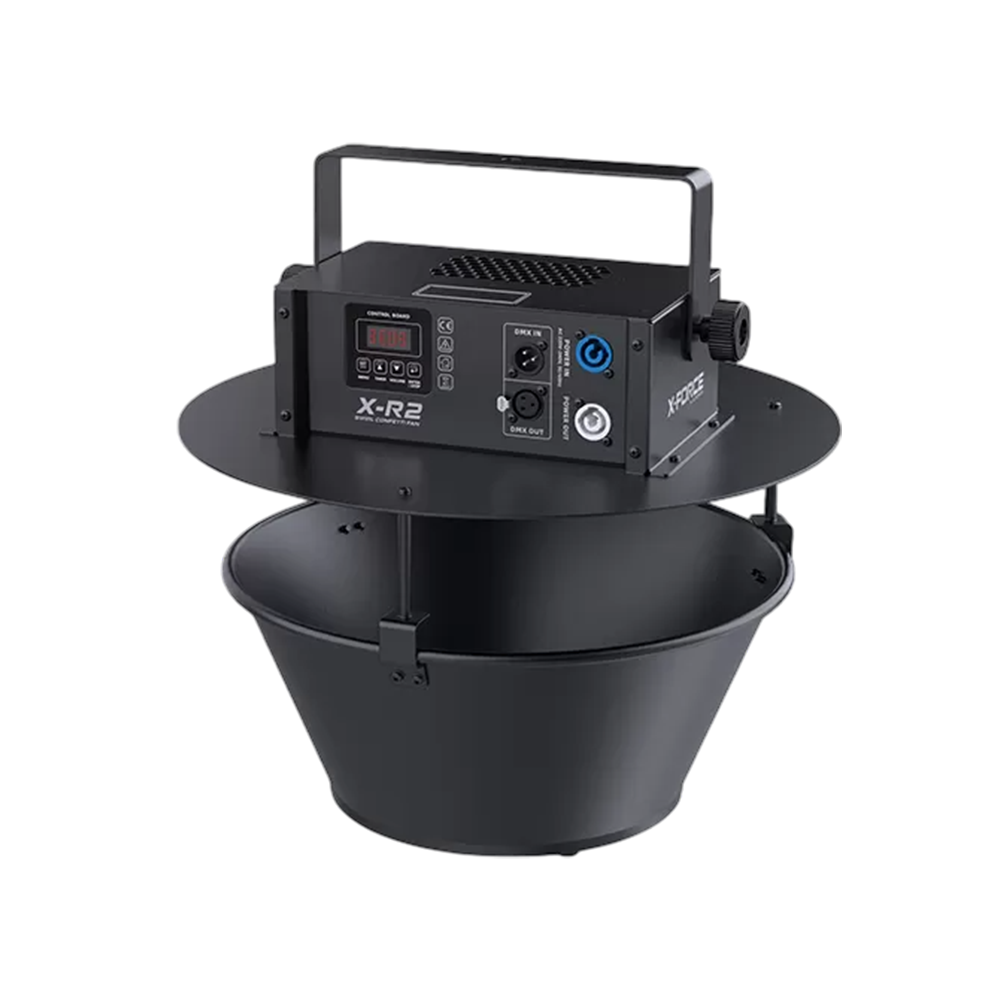X-R2 is an upgraded swirl confetti fan from R-2. X-R2 uses a powerful fan and innovative wind guide structure to increase the confetti capacity. Confetti scattering time for 3-5 minutes and slowly falling like flowers from heaven. It creates a warm atmosphere and festivity for ceremony and performance. When hung 10 meters high, the falling confetti can cover a circular area with 10 square meters. The higher it is hung, the better the effect!