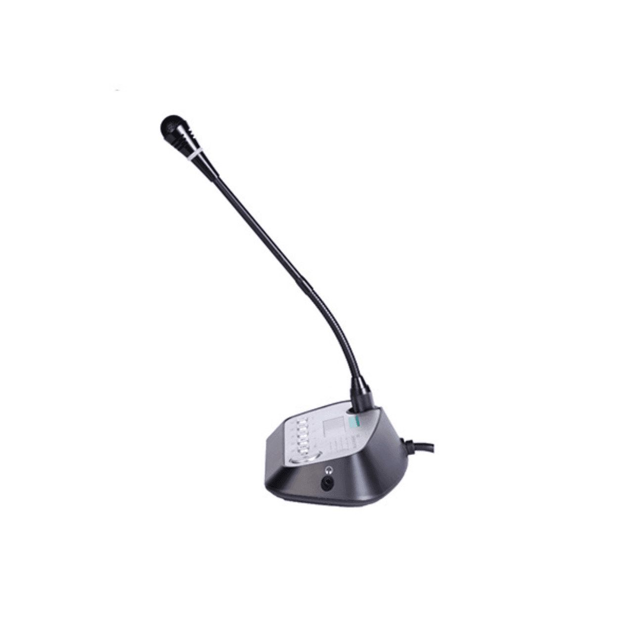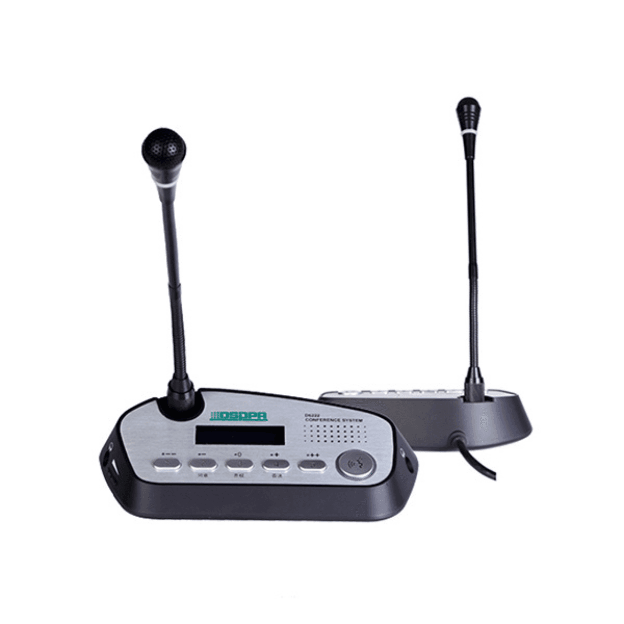 D6222 belongs to the conference room audio system, it is a desktop delegate speech/vote unit that provides functions such as speech, vote, check-in and self-checking. It adopts a goose-neck microphone, built-in magnetic loudspeaker, and headphone jack, and also provides power-on indicating light and button and light indicators.
