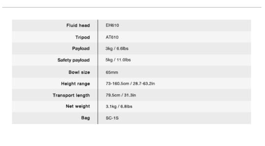 The E-IMAGE new video tripod EK610 offer excellent stability with the two-stage aluminum tube. Ergonomic leg adjustment knobs provide fast tripod height adjustment with strong locking. smooth operation while shooting  with DV and HDV camcorders or DSLR cameras. It provides fixed counterbalance that helps the fluid head support loads up to 3kg(6.6lbs). The adjustment mid-level spreader on the tripod for stability and it is compatible with E-IMAGE dollies. A carrying bag is included which larger enough to hold the legs, head and  spreader for your convenience.