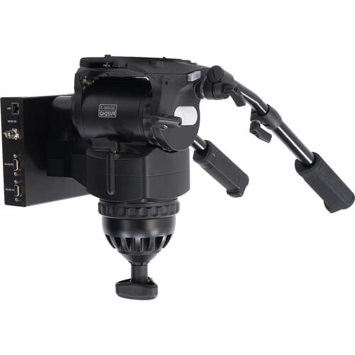 The GH25XR Virtual Production 100mm Pro Fluid Video Head from E-Image is a high-performance head and lens tracking system that bundles a fully encoded tripod head, focus and zoom lens encoders, and a data box. It serves as an integral component of XR systems, with support for payloads up to 55 lb. Tracking data is sent via RJ45 UDP or RS-422 serial data employing the widely adopted Free-D protocol. A hard case for the fluid head is included.