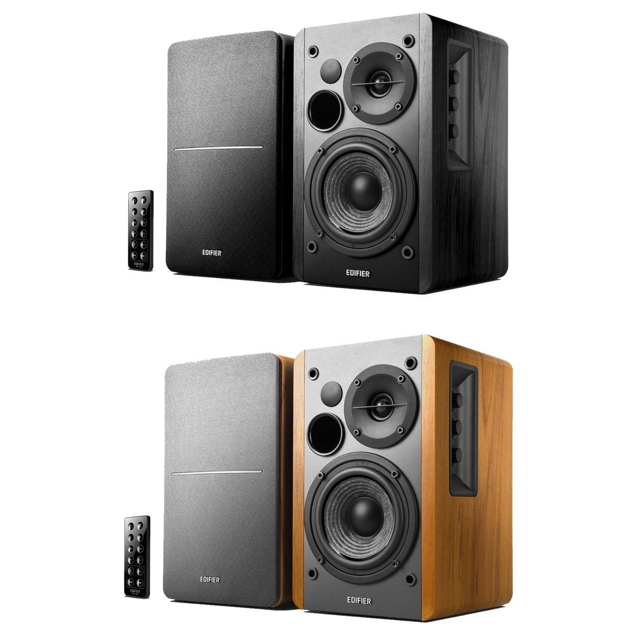 Enjoy wired and wireless audio streaming with the black Edifier R1280DB Bluetooth Speaker System. The system features optical, digital coaxial, two stereo RCA inputs, and Bluetooth connectivity, allowing you to connect nearly any audio source. Each speaker consists of a 4.57″ woofer and a 0.51″ tweeter for full-range audio. The system outputs up to 42W RMS to provide room-filling sound. For your convenience, all connectivity is via the powered right speaker, which connects to the passive left speaker with the included speaker connecting cable. Optical, stereo RCA, and 1/8″ to RCA audio cables are included for instant connectivity.
