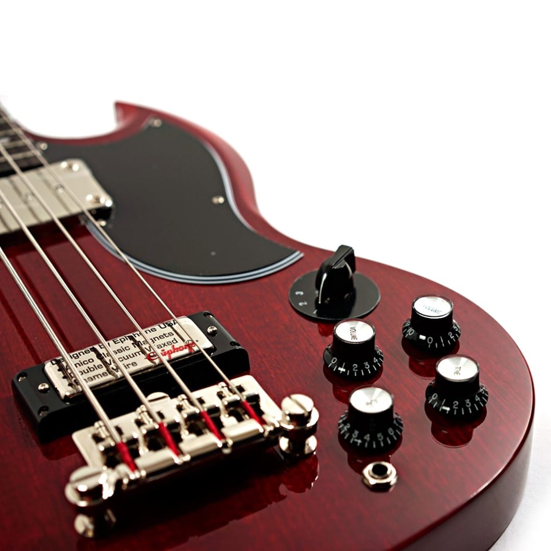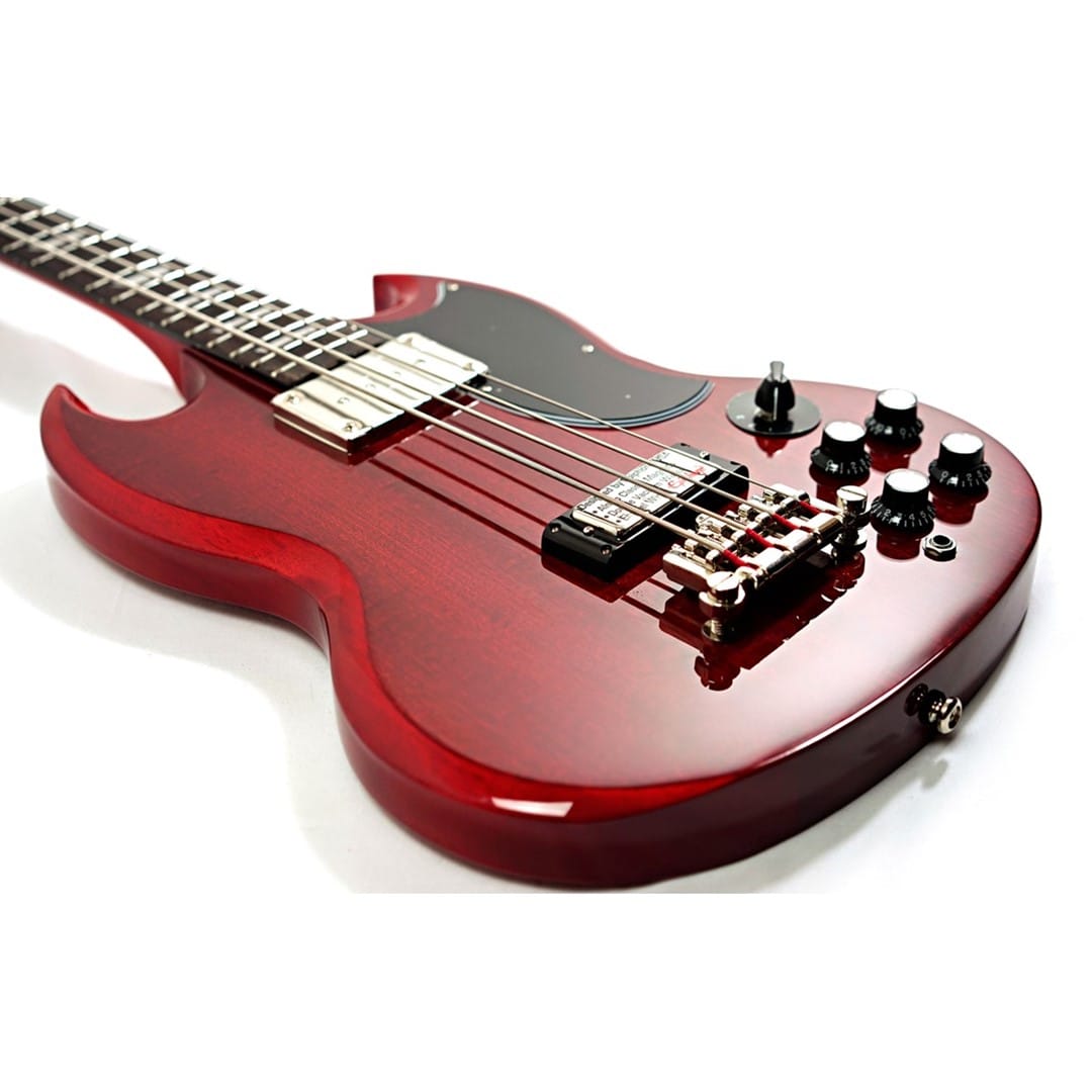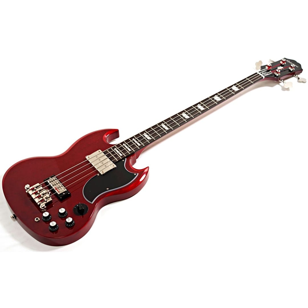 The Epiphone EBG3-CH EB-3 SG Bass Cherry is a modern tribute to the classic SG bass, offering both vintage charm and contemporary features for today’s bassists. Crafted from solid mahogany, the body and neck of the EB-3 SG Bass deliver warm, resonant tones with exceptional sustain, making it ideal for rock, jazz, and blues. The mahogany construction enhances each note's decay, giving the bass a rich, organic sound that is essential for genres requiring deep, expressive lows and clear, articulate highs. Transitioning smoothly between genres, this bass guitar accommodates various playing styles, thanks to its versatile pickup configuration.