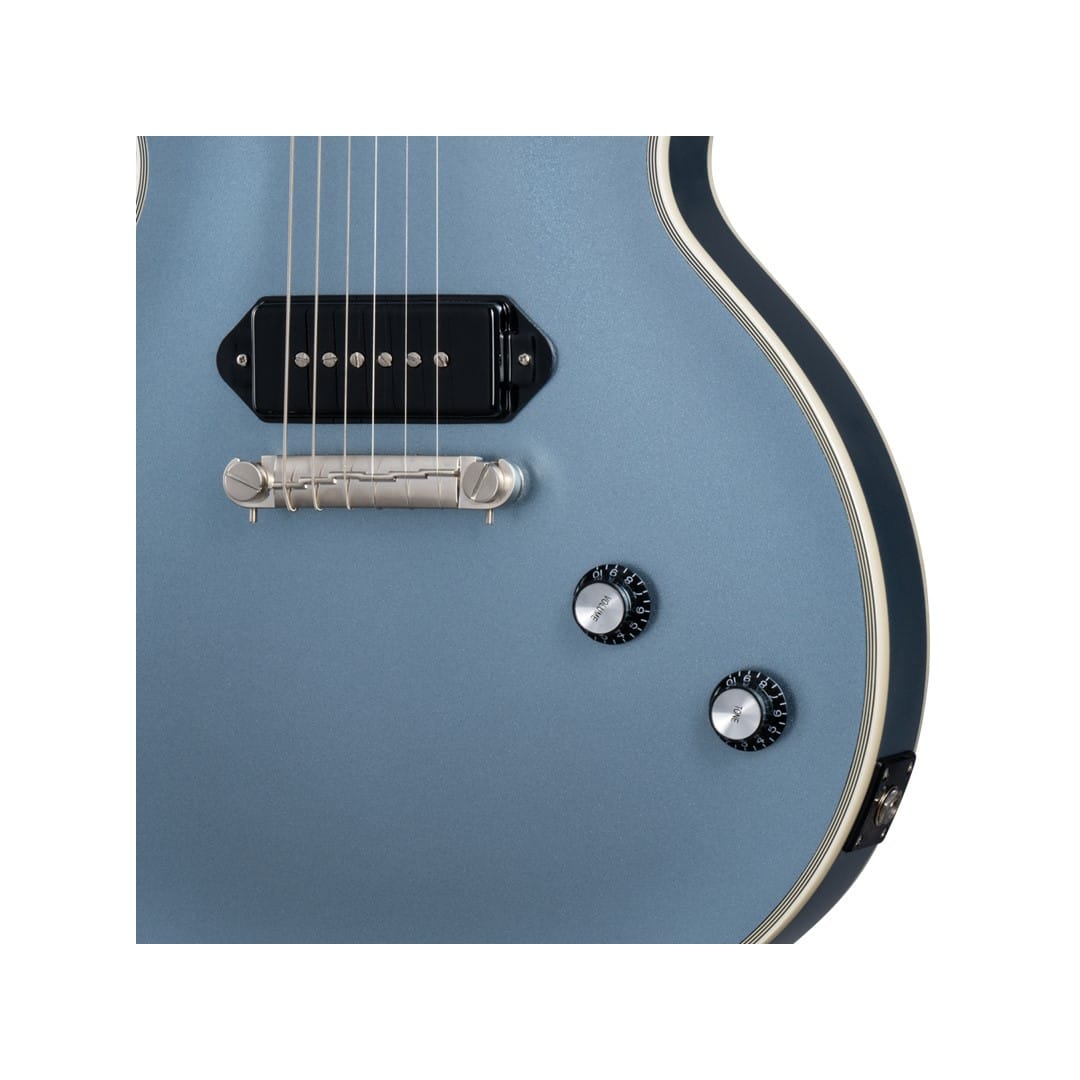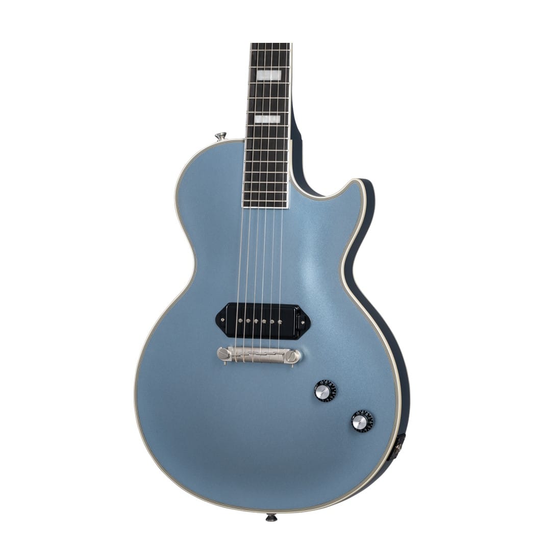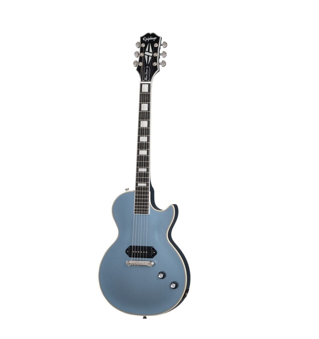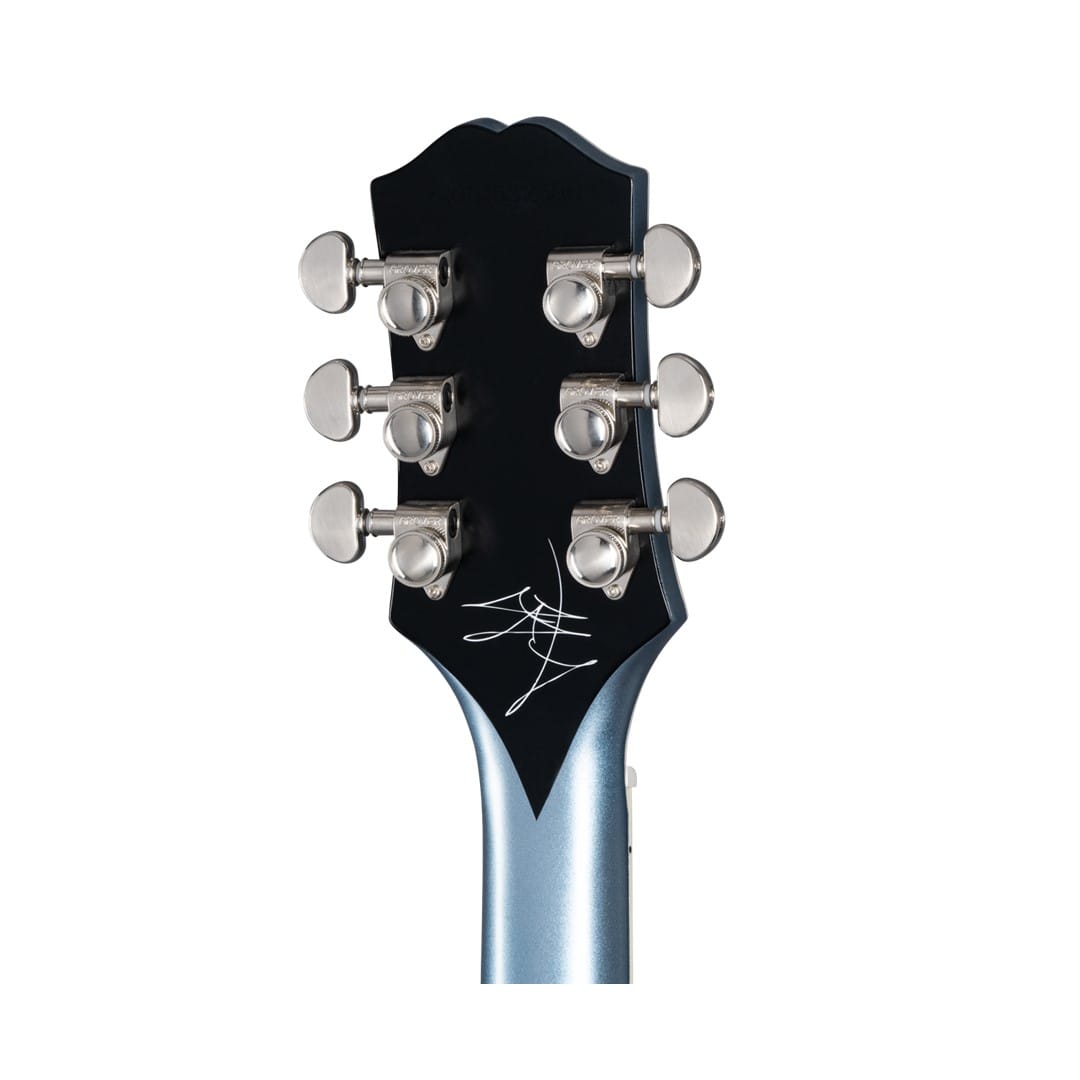 The Epiphone EILPCJJNAPB Jared James Nichols Blues Power Les Paul Custom represents a remarkable blend of classic design and modern innovation. This latest signature model from the acclaimed Gibson Brand Ambassador, who hails from Les Paul’s hometown, showcases traditional Les Paul Custom styling combined with a stunning Aged Pelham Blue finish. The guitar features classic cosmetic appointments, including a 7-ply top, 5-ply back, and single-ply fretboard binding.