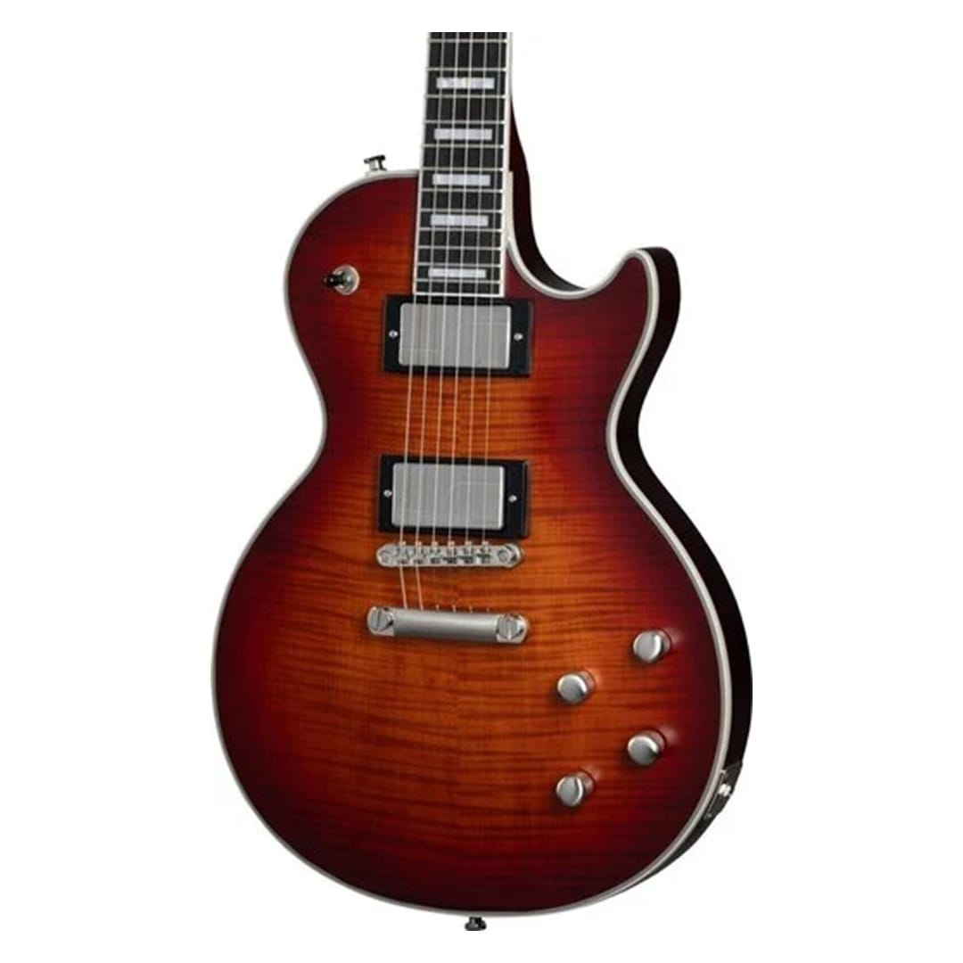 The Epiphone EILPY-ABT L.Paul Prophecy Aged Bengal Tiger Burst seamlessly integrates modern features with classic design elements. Its AAA Flame Maple veneer top and mahogany body, finished in Aged Gloss, offer a visually striking appearance that catches the eye. The asymmetrical SlimTaper neck, made from mahogany and paired with an ebony fingerboard, delivers a comfortable and fast-playing experience. With 24 jumbo frets, this guitar provides ample space for executing intricate solos and smooth fretting.