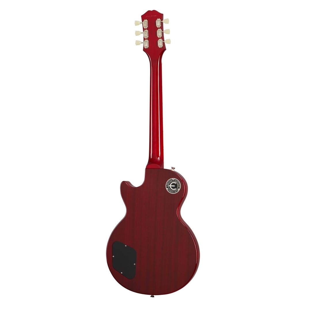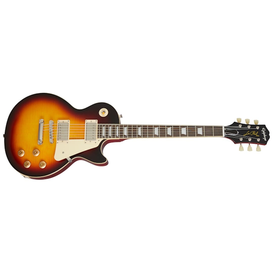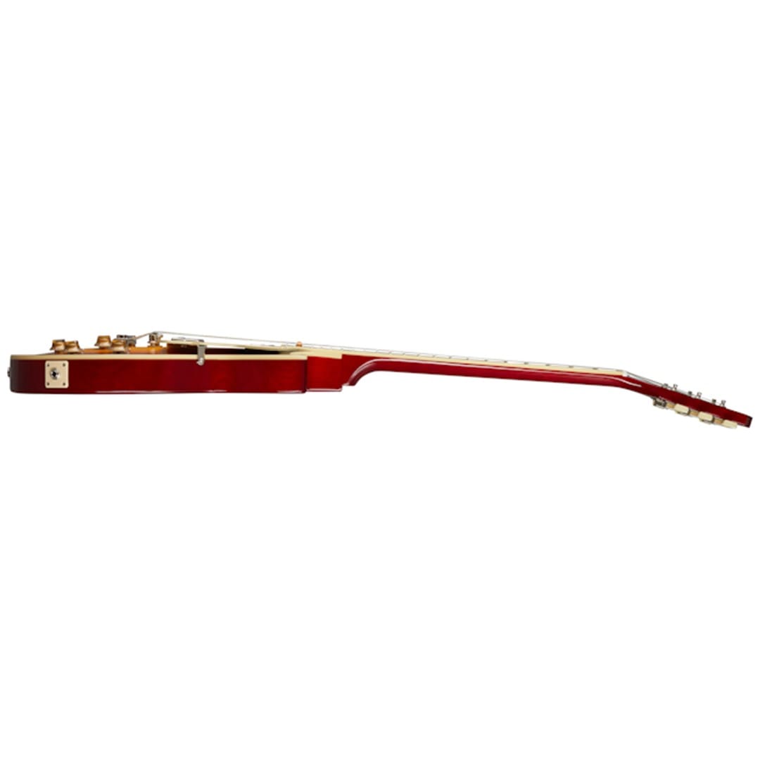 Equipped with Gibson USA BurstBucker 2 and 3 pickups, this guitar delivers the legendary tone of the original 1959 Les Paul Standard. The pickups, along with CTS pots, Mallory capacitors, and 50s era wiring, offer a versatile tonal range, from rich cleans to gritty overdrive. The Epiphone LockTone ABR-1 bridge and Stop Bar tailpiece provide excellent tuning stability and sustain. The aged gloss finish, cream binding, and nickel hardware complete its vintage appearance. Additionally, this model includes a vintage-style brown hardshell case and a metal medallion toggle switchplate, enhancing its authentic feel.