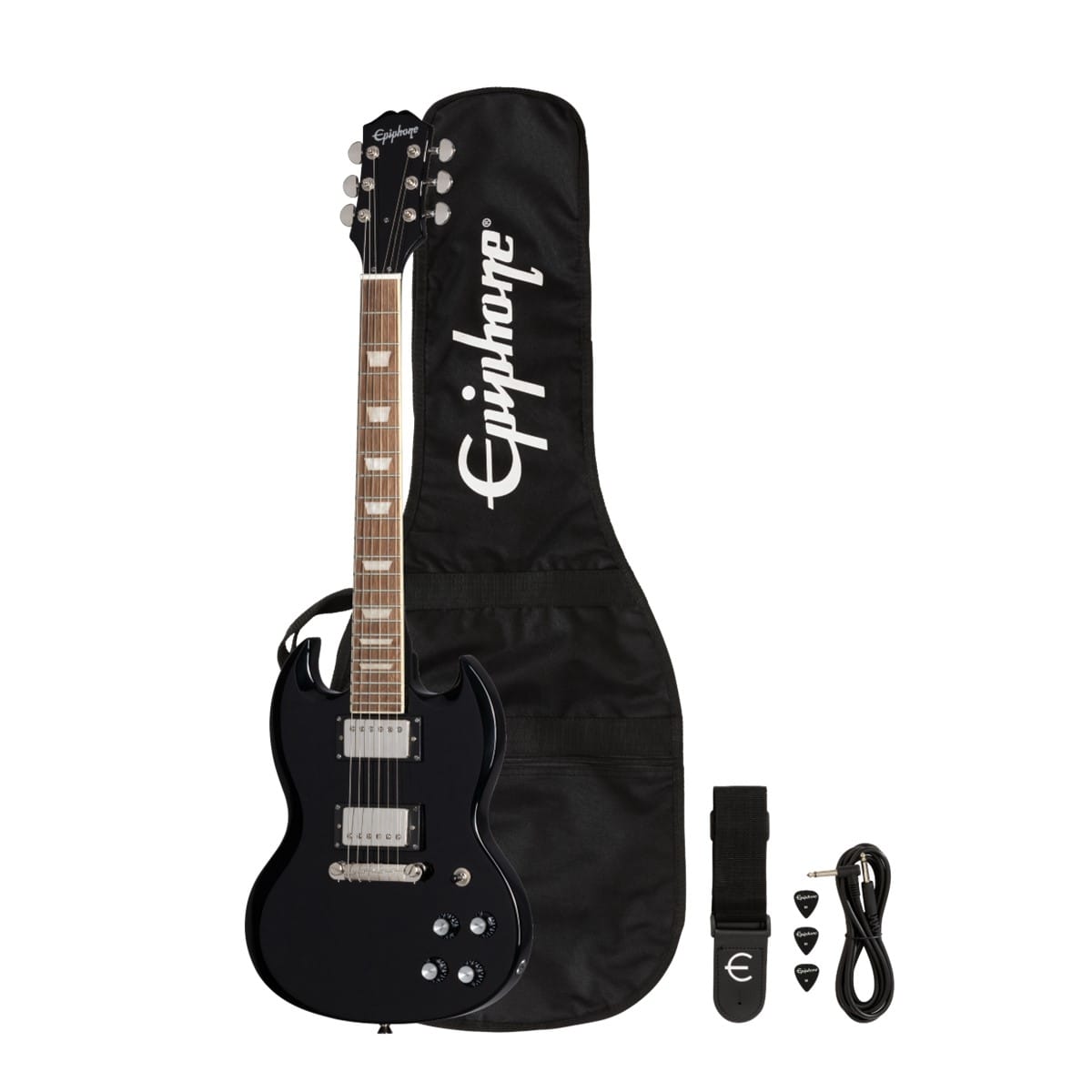 The Epiphone ES1PPSG-EB Power Players SG Pack in Ebony: