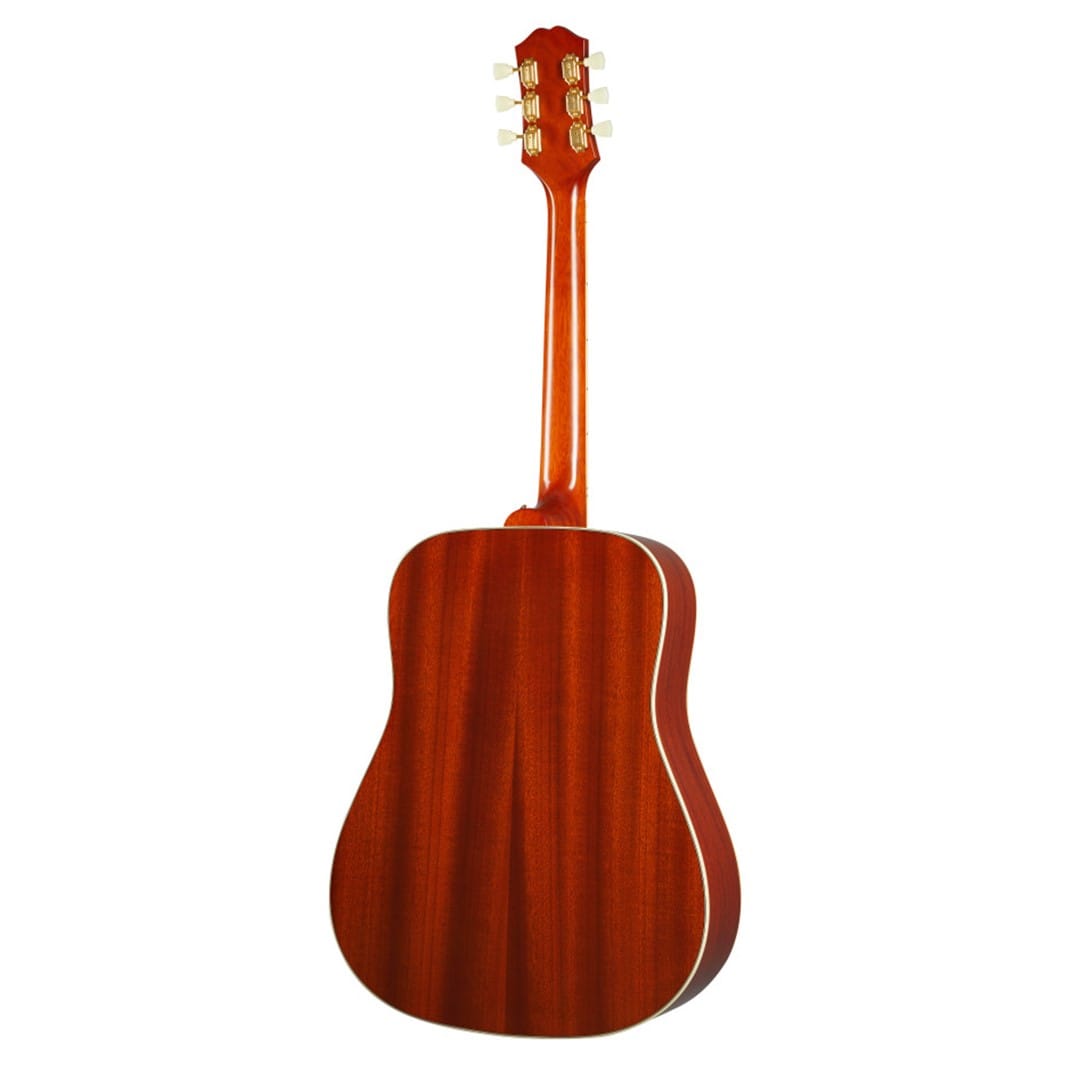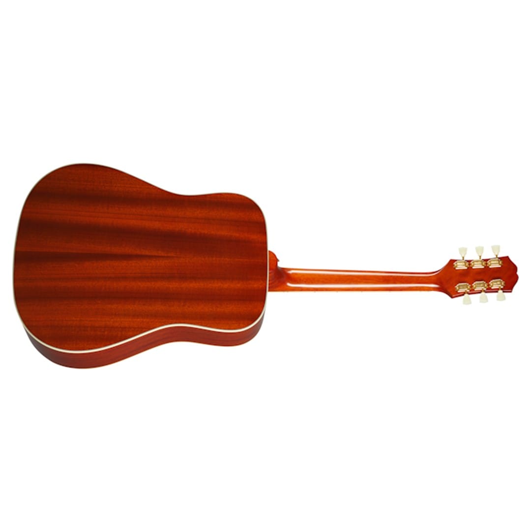 Body and Tonewoods: The Epiphone IGMTHUM-ACH Hummingbird features a solid Sitka spruce top paired with solid mahogany back and sides. This combination of tonewoods delivers a balanced sound with bright highs and warm lows, ideal for various playing styles.