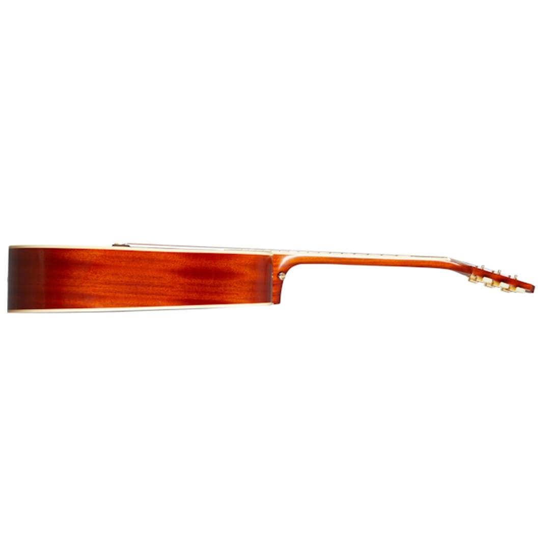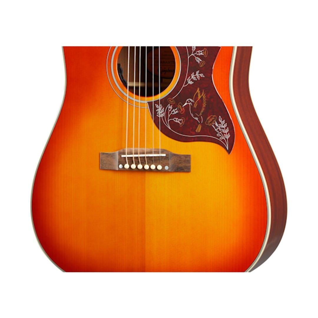 Aesthetic Details: The Aged Cherry Sunburst finish highlights the natural wood grain, while the iconic Hummingbird tortoise shell pickguard with intricate graphics adds a vintage touch. Multi-ply binding on the top and back not only enhances durability but also provides an elegant appearance.