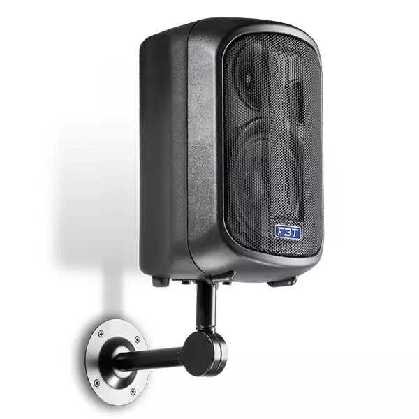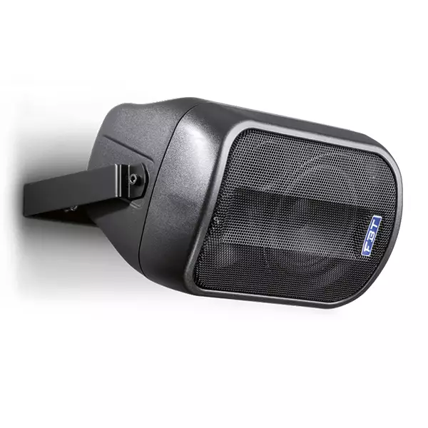 The FBT J5 series speakers feature lightweight, yet rugged gas injected molded polypropylene cabinet construction. Available in black or white finish the FBT J5 series speakers modern cabinet appearance provides fixed installations with an elegant design that blends into any decor. With the use of optional accessories the FBT J5 speakers can be mounted on mic stands for many nearfield monitor applications, live sound and as a studio monitor. The FBT J5 is of two way design incorporating an 5″ low frequency woofer and 1″ HF custom compression driver. Cabinnet dispersion is 90°H x 90°V allowing for wide pattern coverage. The internal crossover is at a fixed frequency of 3.5kHz. With a frequency range of 90Hz – 20kHz the FBT J5 speakers provide high fidelity sound for both speech and music applications with a maximum SPL of 117dB. A front face steel grille protects the speaker from external damage. Ideal for small fixed installations the FBT J5 speaker system have an impedance of 16 Ohm allowing four FBT J5 speakers to be utilized per channel, for a total of eight J5 speakers when used with a stereo power amplifier capable of operating at 2 Ohm. The two M6 fly points built into the cabinets along with the optional mounting brackets allow the FBT J5 speakers to be surface mounted on walls or ceiling. For portable or fixed use the FBT J5 speakers can be mounted on mic stands by using the optional adapters for vertical mounting. Rear panel connections feature both a female 1/4″ input jack and push pin terminal connectors which are internally connected in parallel providing various wiring options for the installer.