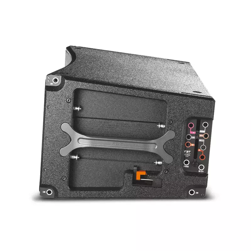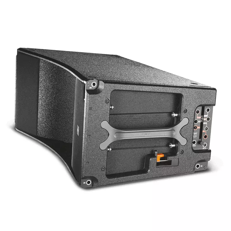 - Integral 4-point rigging system for suspending up to 20 cabinets with 8° splay angle in 1° increments; angles can be set while stacks rest in caster frame