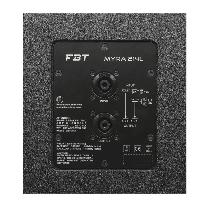 The Myra 214L is a 1600W + 640W to 147dB SPL Bi-amped 3-way Line Arry Speaker. It is made with premium Baltic birch and polyurea coating for a professional finished touch and so it stays protected while on the road.