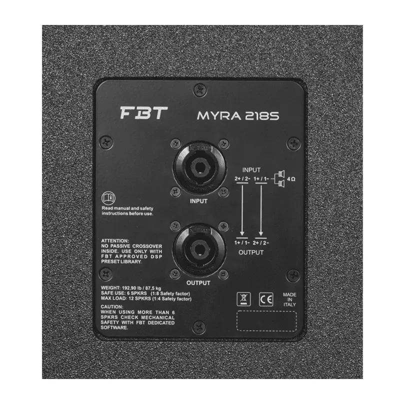The Myra system by FBT combines precision sound quality with practical hardware and distinctive Italian design. It includes the 214L mid/high line array and the 218S subwoofer, developed after extensive collaboration with leading tour sound companies and a rigorous three-year R&D process. The 214L features a new coaxial driver setup covering 400Hz to 20kHz, designed for low distortion and controlled directivity through a proprietary waveguide. Its robust construction, using Baltic birch and weather-resistant polyurea coating, ensures durability for touring.