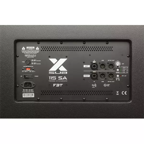 The FBT X-SUB 115SA provides a DSP processor with 4 presets (2 responses with 2 different cut-off frequencies). The FBT X-SUB 115SA feature 0,59″ birch plywood construction with scratch resistant black paint finish with M20 top mounted stand adapter, two FBT design aluminium handles and four optional 100mm/3,93″ transport wheels.