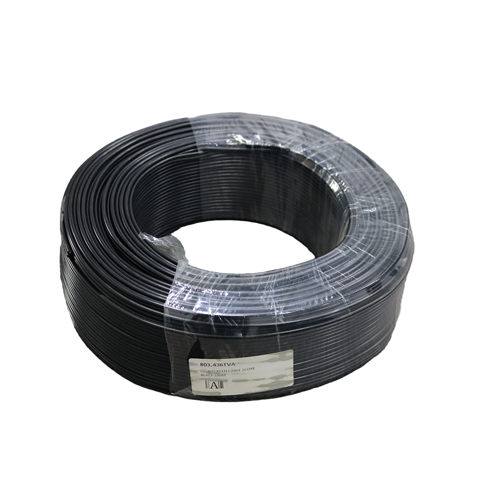 Figure‑8 screen cable with 2‑core conductors, provided in a 100 m length for consistent, low‑interference performance.
